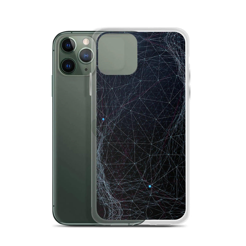 Load image into Gallery viewer, Blue Dark Cyber Polygon Flexible Clear iPhone Case Bump Resistant Corners CREATIVETECH