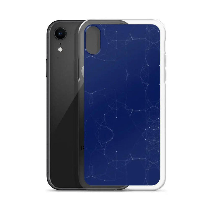 Load image into Gallery viewer, Dark Navy Blue Elegant Cyber Polygon Flexible Clear iPhone Case Bump Resistant Corners CREATIVETECH