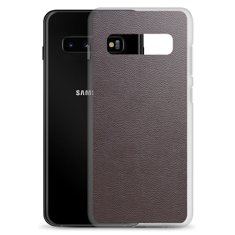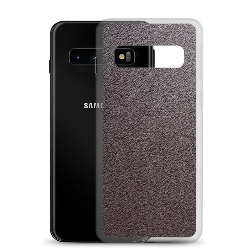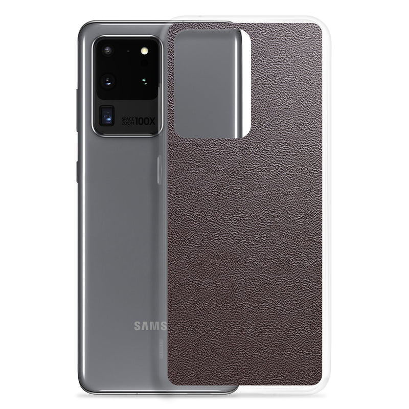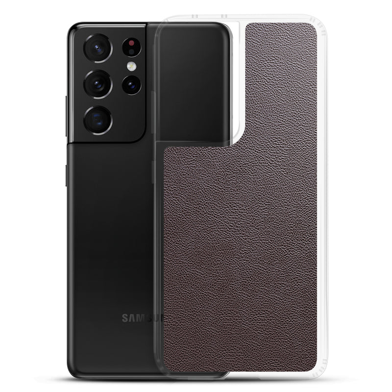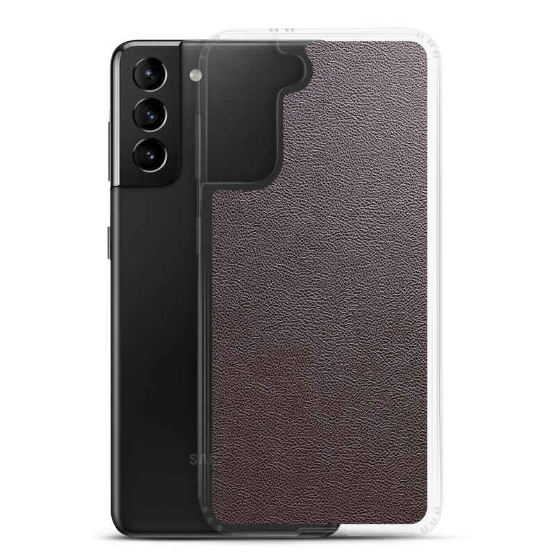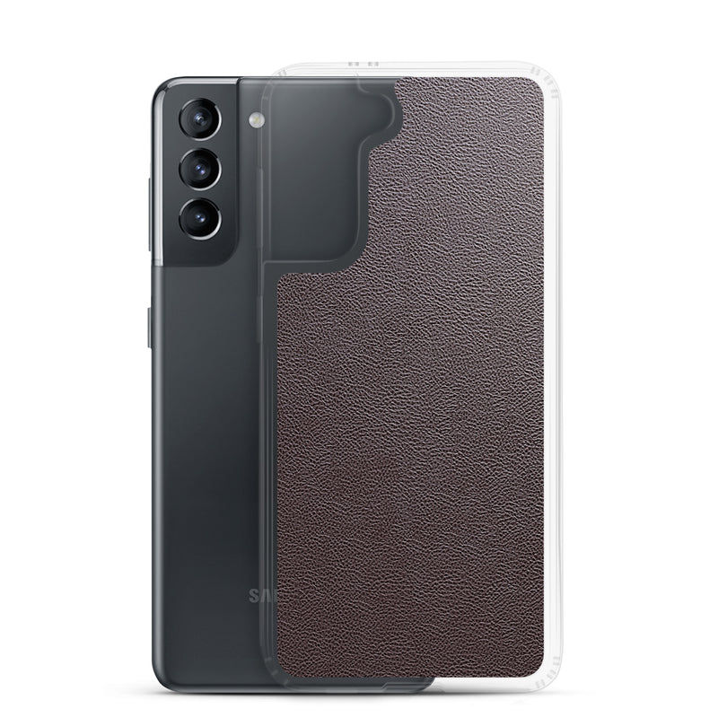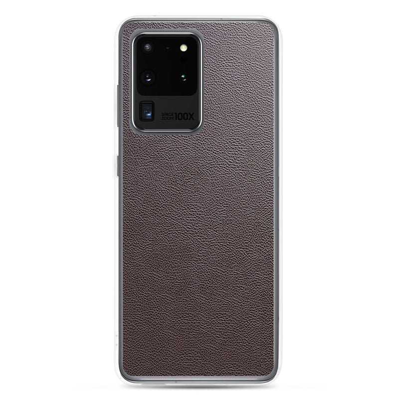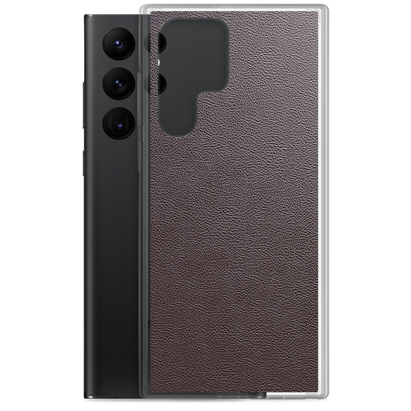 Dark Brown Leather-Like Samsung Case Clear Thin