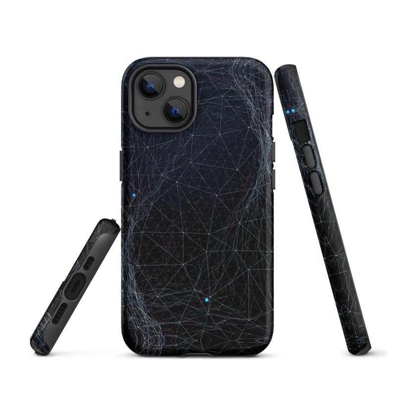 Dark Cyber Blue iPhone Case Hardshell 3D Wrap Thermal Double Layer
