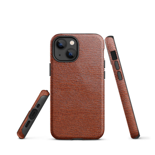 iPhone 13 mini Glossy Exotic Brown Leather-Like iPhone Case Hardshell 3D Wrap Thermal Double Layer