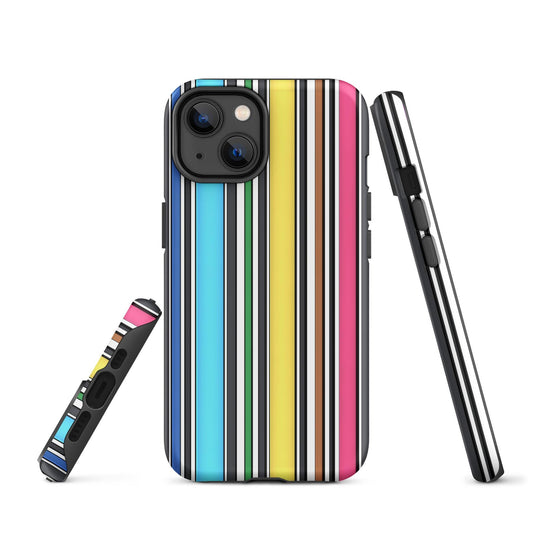 Load image into Gallery viewer, Rainbow Striped Colorful Hardshell iPhone Case Double Layer Impact Resistant Tough 3D Wrap Matte or Glossy Finish CREATIVETECH