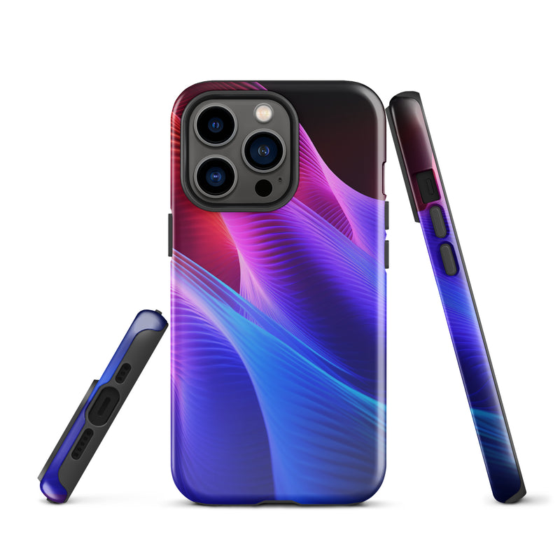 Blue Abstract Sound Waves iPhone Case Hardshell 3D Wrap Thermal Double Layer
