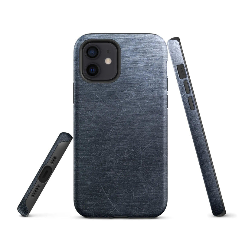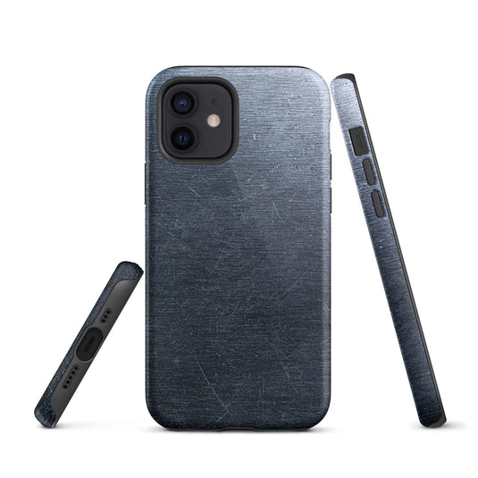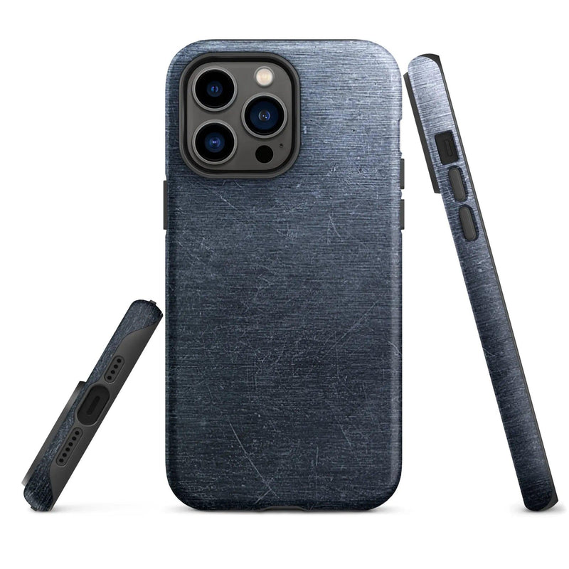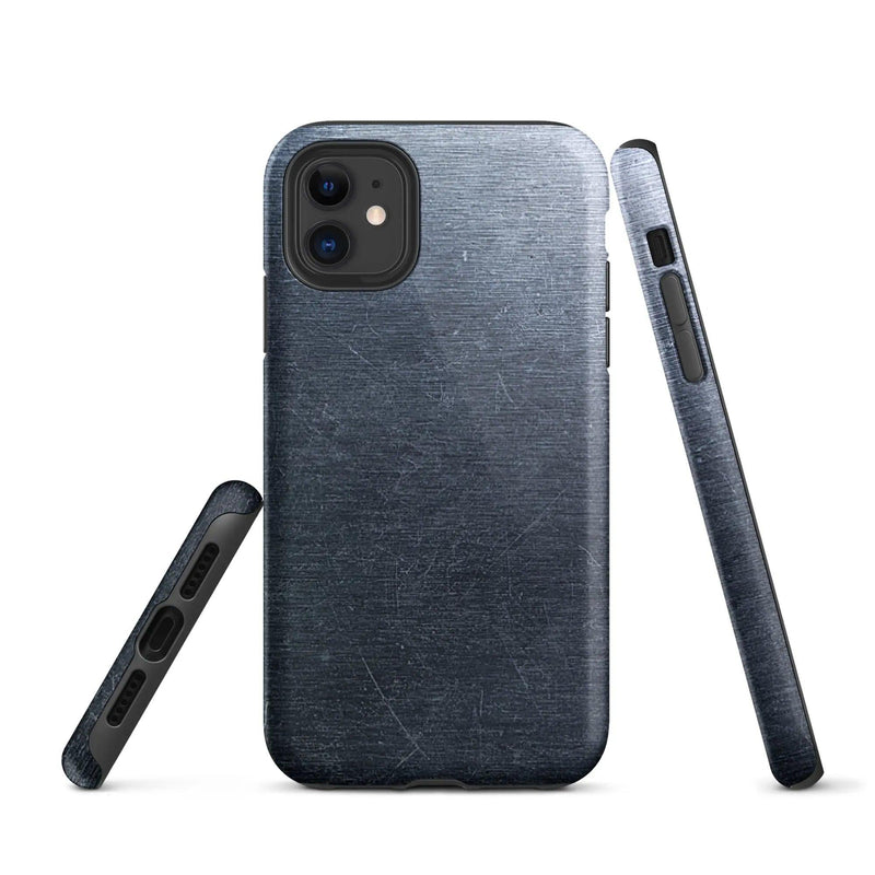 Load image into Gallery viewer, Brushed Dark Silver Industrial Metal Double Layered Impact Resistant Tough iPhone Case 3D Wrap Matte or Glossy Finish CREATIVETECH