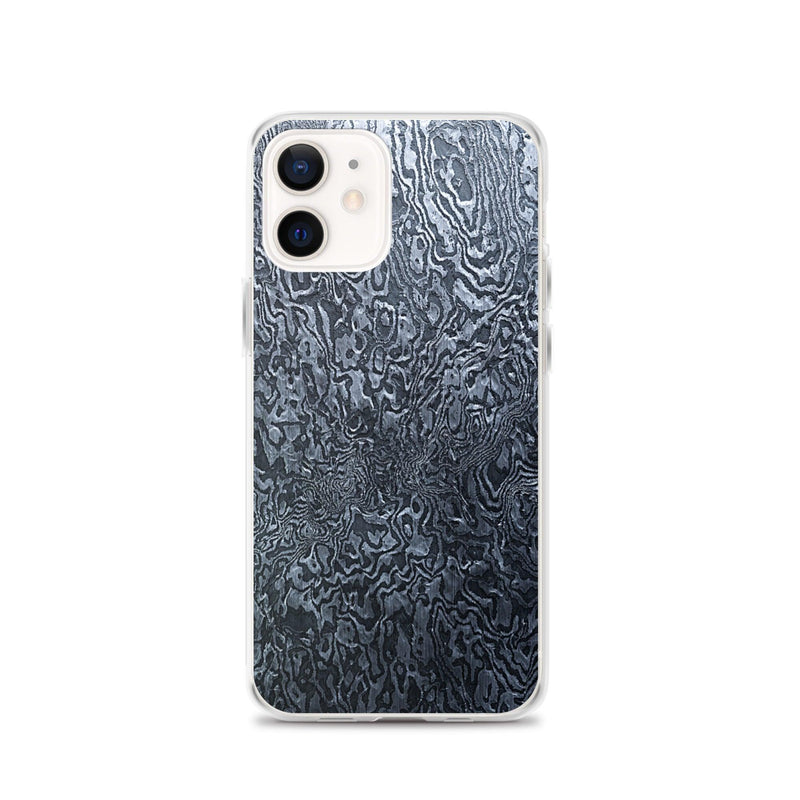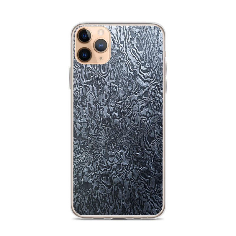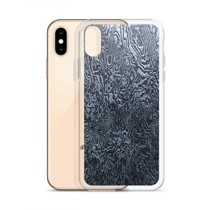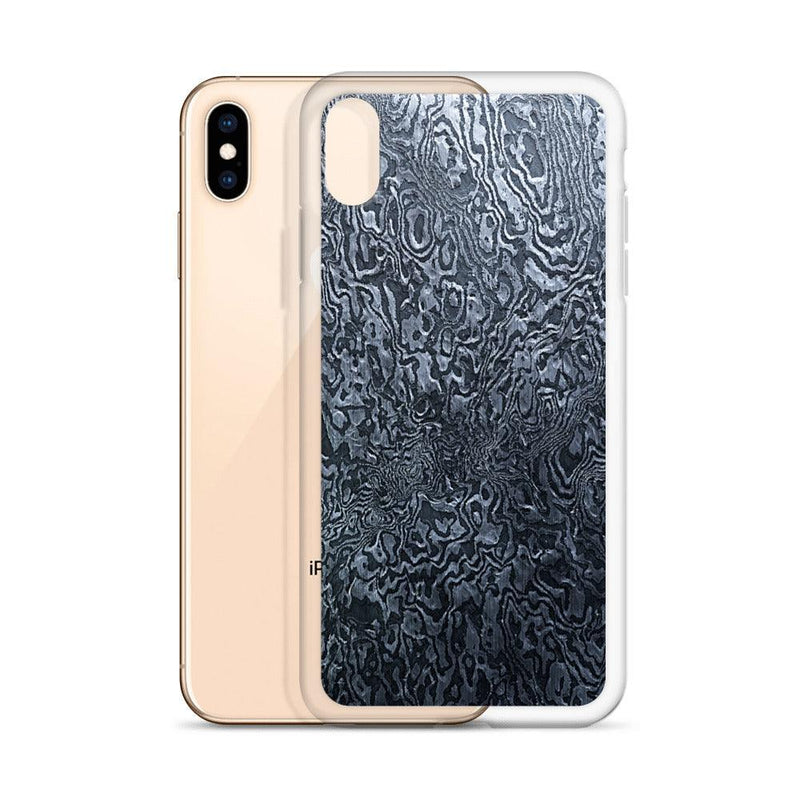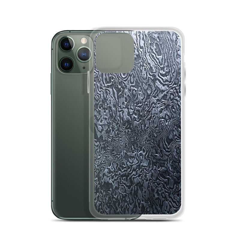 Load image into Gallery viewer, Damascus Steel Industrial Style Dark Grey Black Flexible Clear iPhone Case Bump Resistant Corners CREATIVETECH