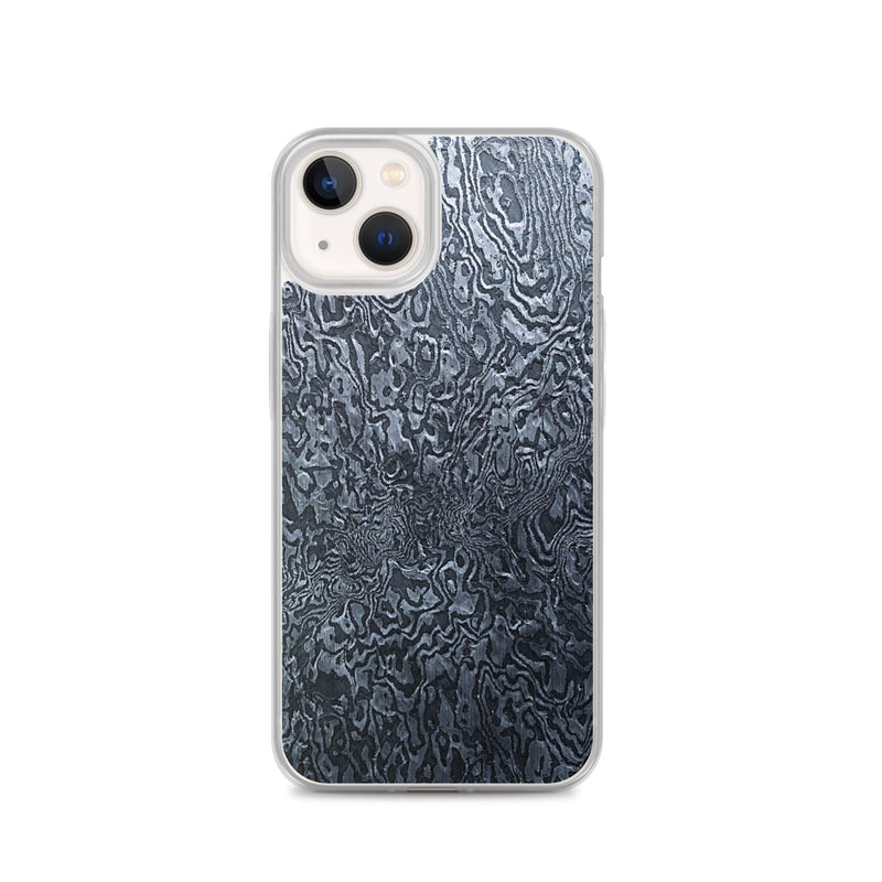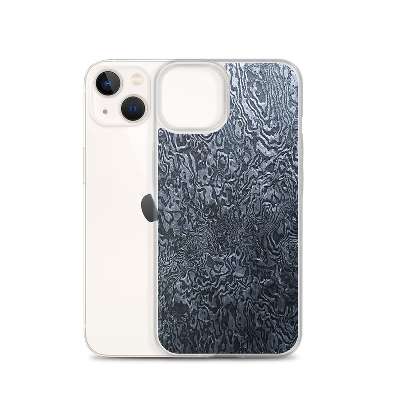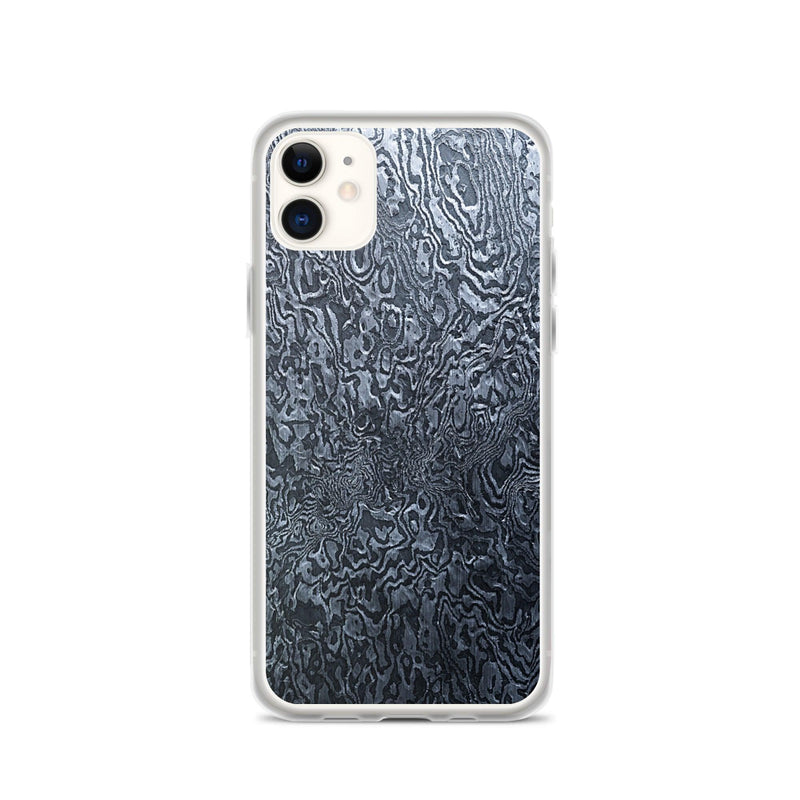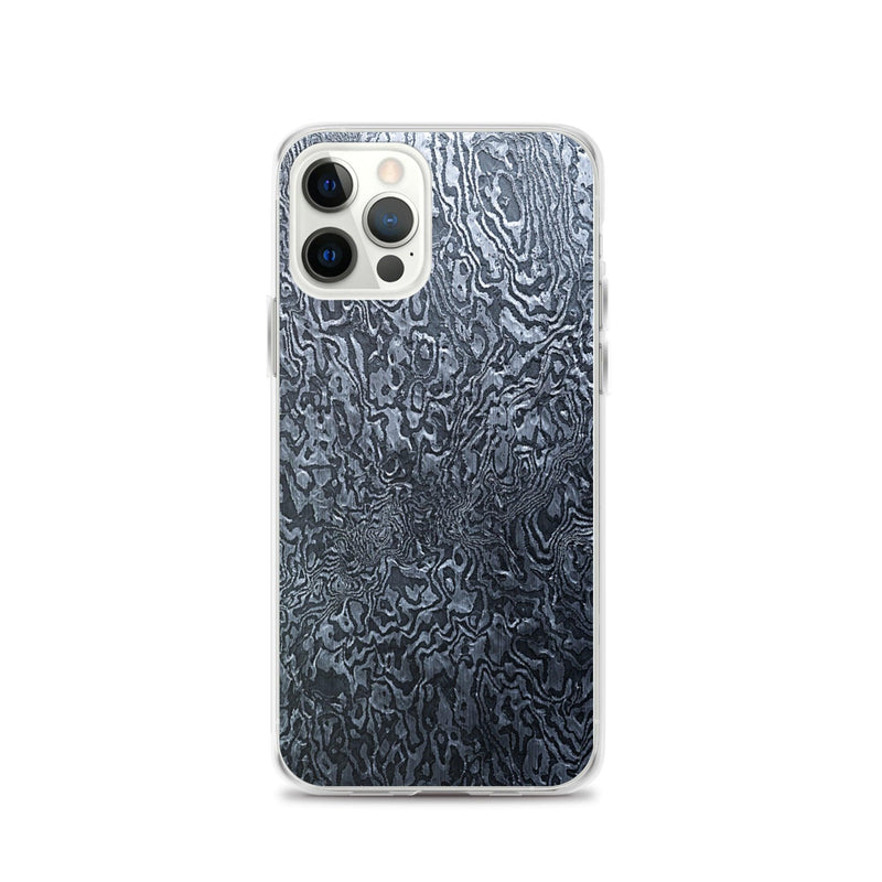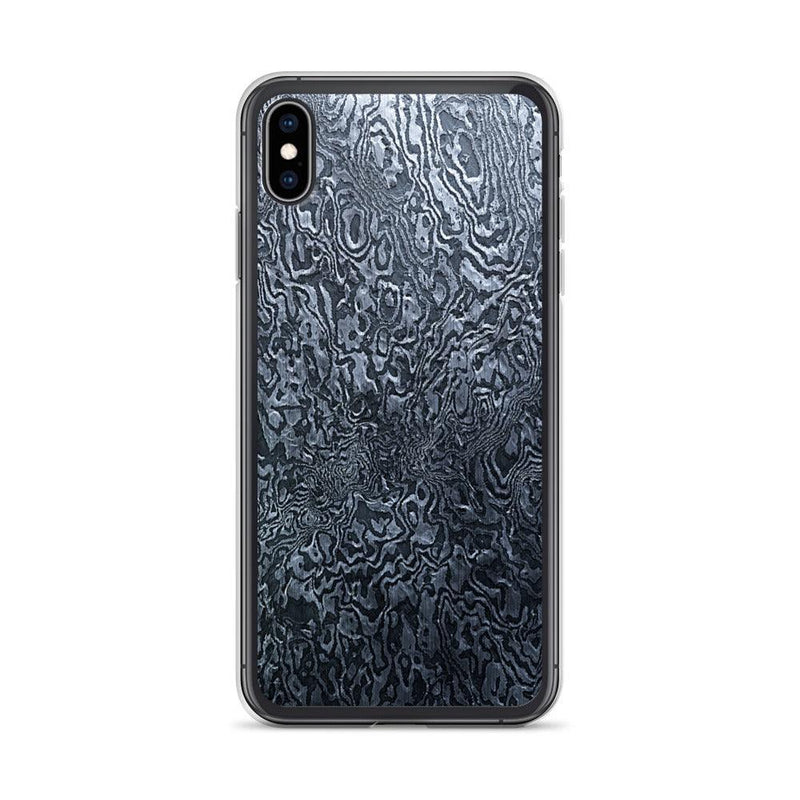 Load image into Gallery viewer, Damascus Steel Industrial Style Dark Grey Black Flexible Clear iPhone Case Bump Resistant Corners CREATIVETECH
