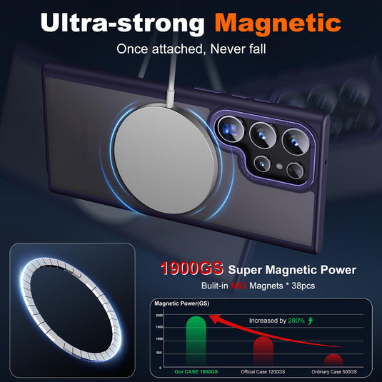 • [Stronger Wireless Charging Compatible] - Our s23 ultra cases compatible with magsafe accessories and chagers, use the latest magnetic coil tech to ensure a faste and safe wireless charging without removing the case, support use with wireless power bank, wireless charging stand, car mount charging, provide 35% charging efficiency than original charging. With magnetic back for galaxy s23 ultra case reinforces the magnetic force, making the phone more stable when using it on the car mount.