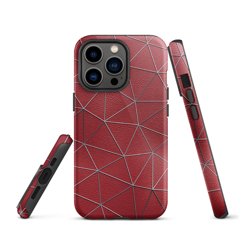 Silver Polygon Red Leather-Like iPhone Case Hardshell 3D Wrap Thermal Double Layer