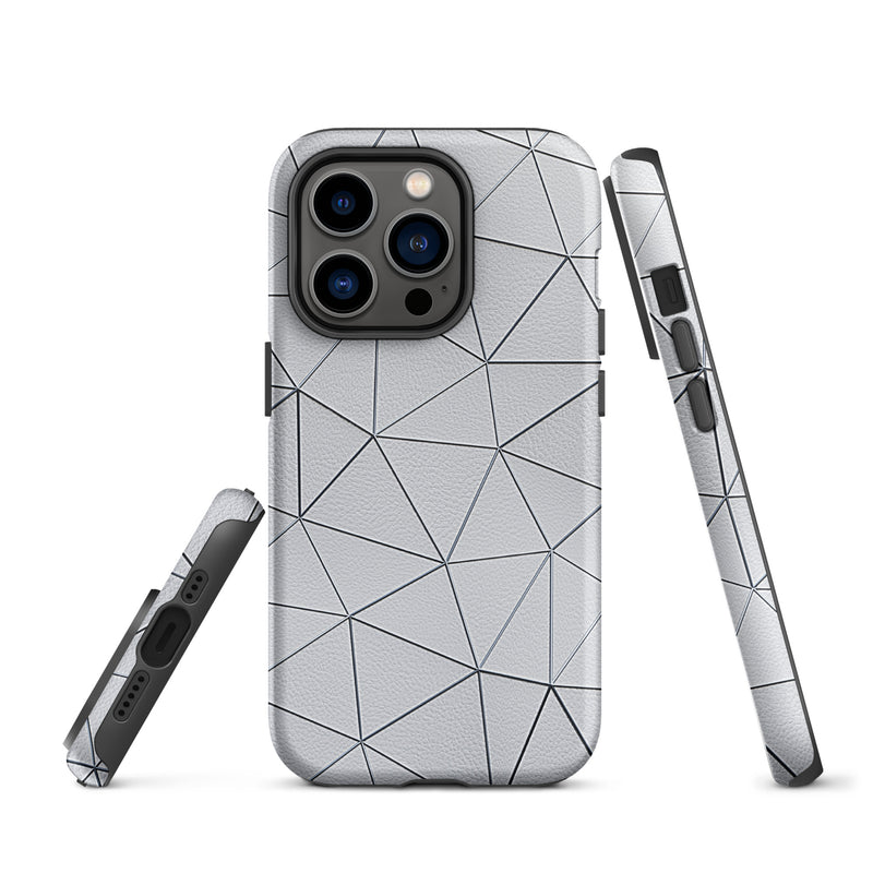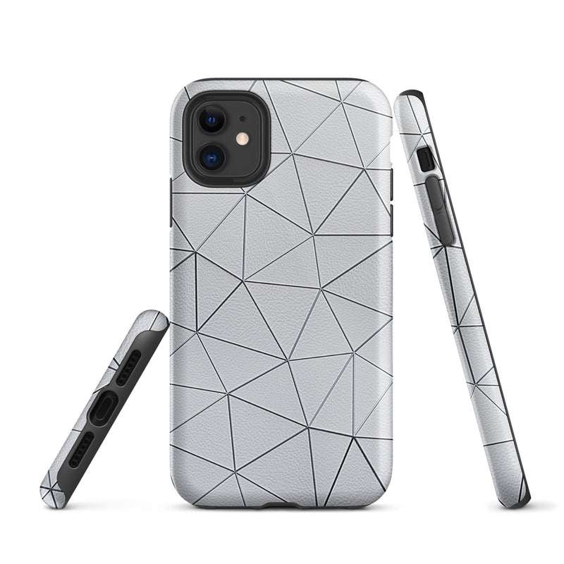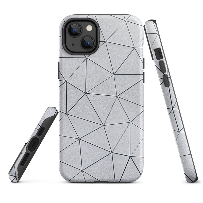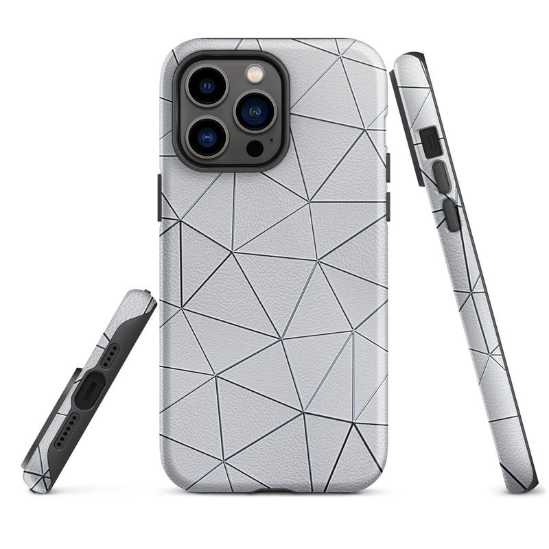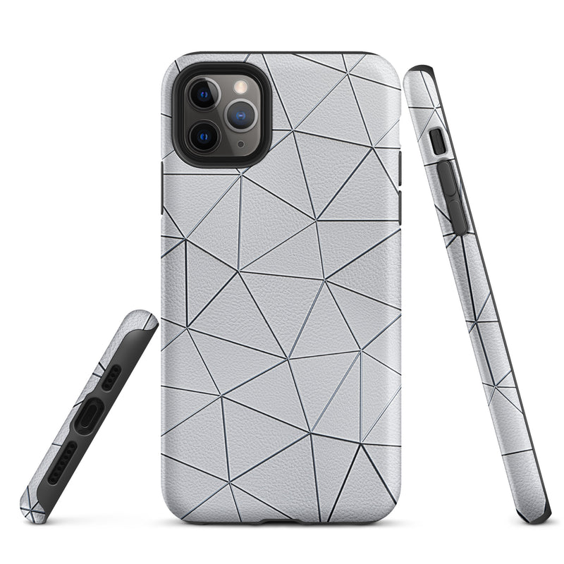 Silver Polygon White Leather-Like iPhone Case Hardshell 3D Wrap Thermal Double Layer