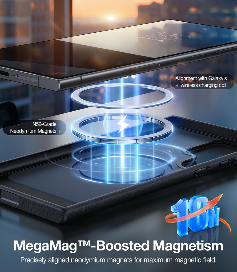 • Reimagined Magnetic Experience: Enjoy reliable magnetic stability with a 60% stronger attraction compared to other solutions. This S24 phone case with 18N powerful magnetic force, your new phone can stick to any magnetic accessories. Moreover, this strong magnetic feature also guarantees an efficient wireless-charging experience and a secure holder on your car mount.