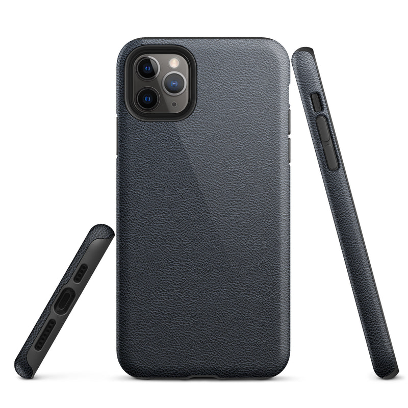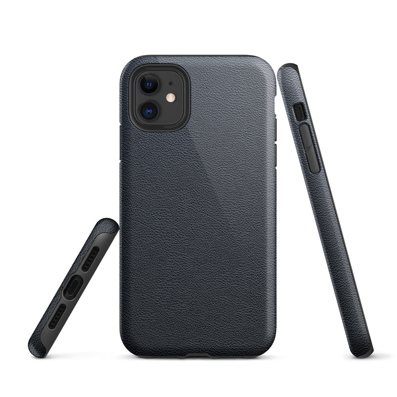 Black Leather-Like iPhone Case Hardshell 3D Wrap Thermal Double Layer