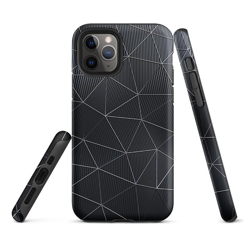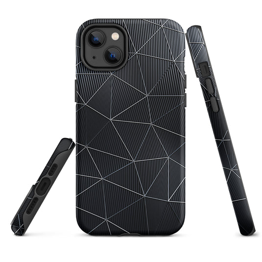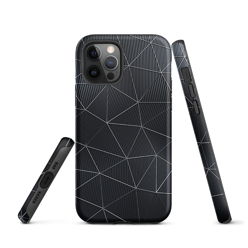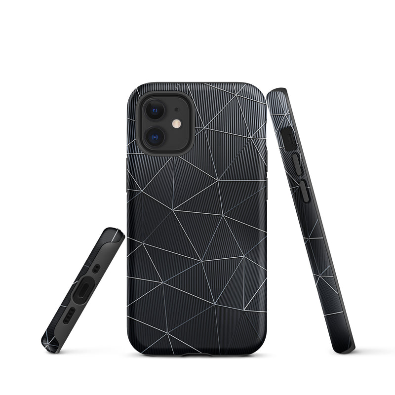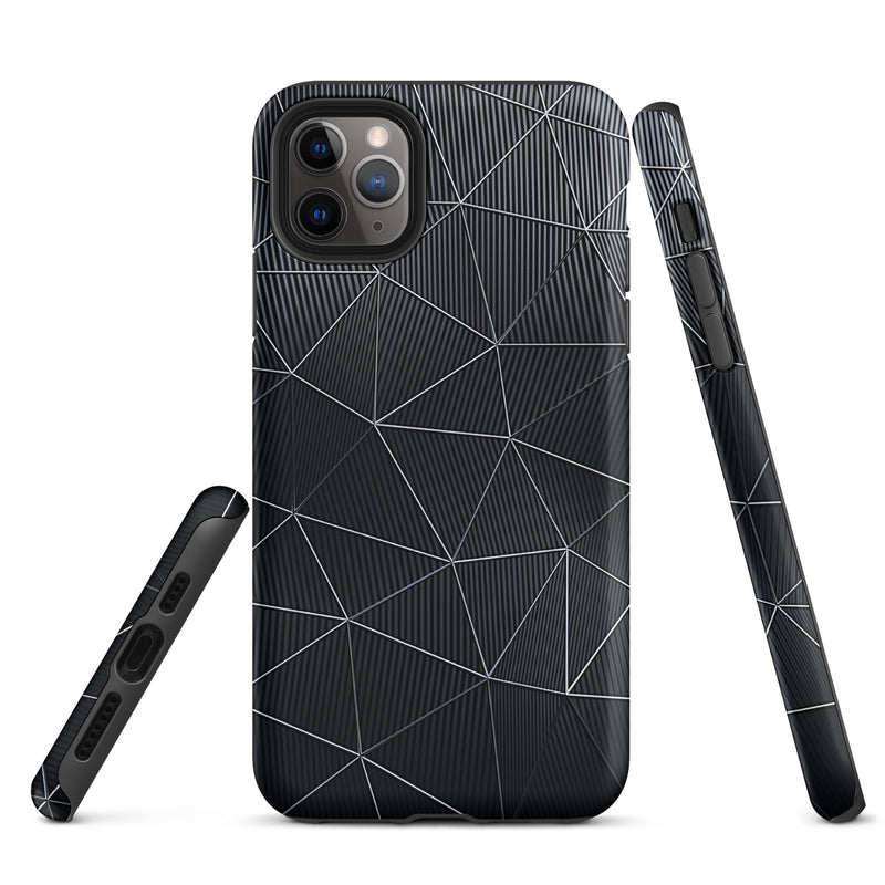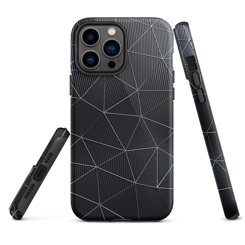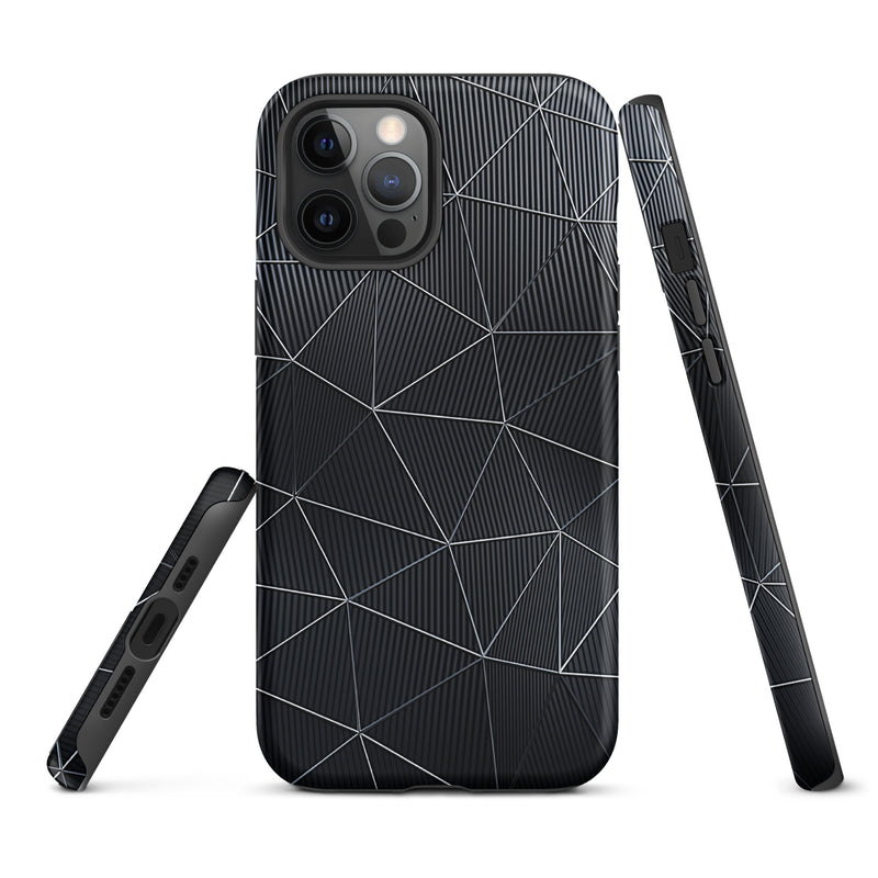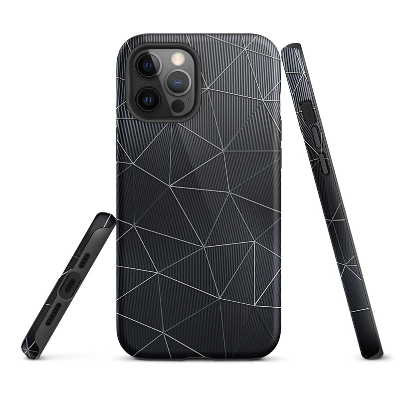 Silver Polygon Black Fiber Striped iPhone Case Hardshell 3D Wrap Thermal Double Layer