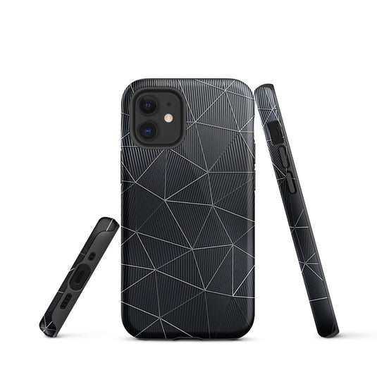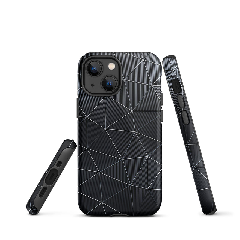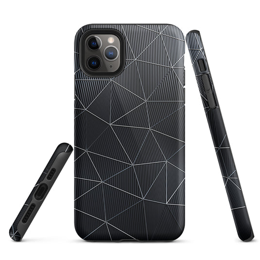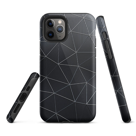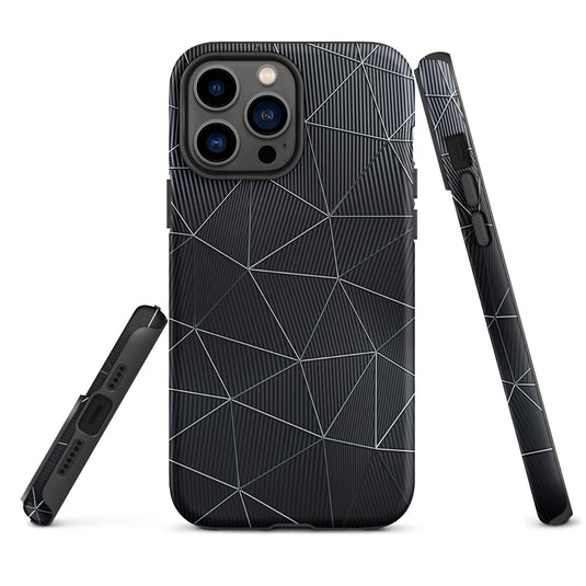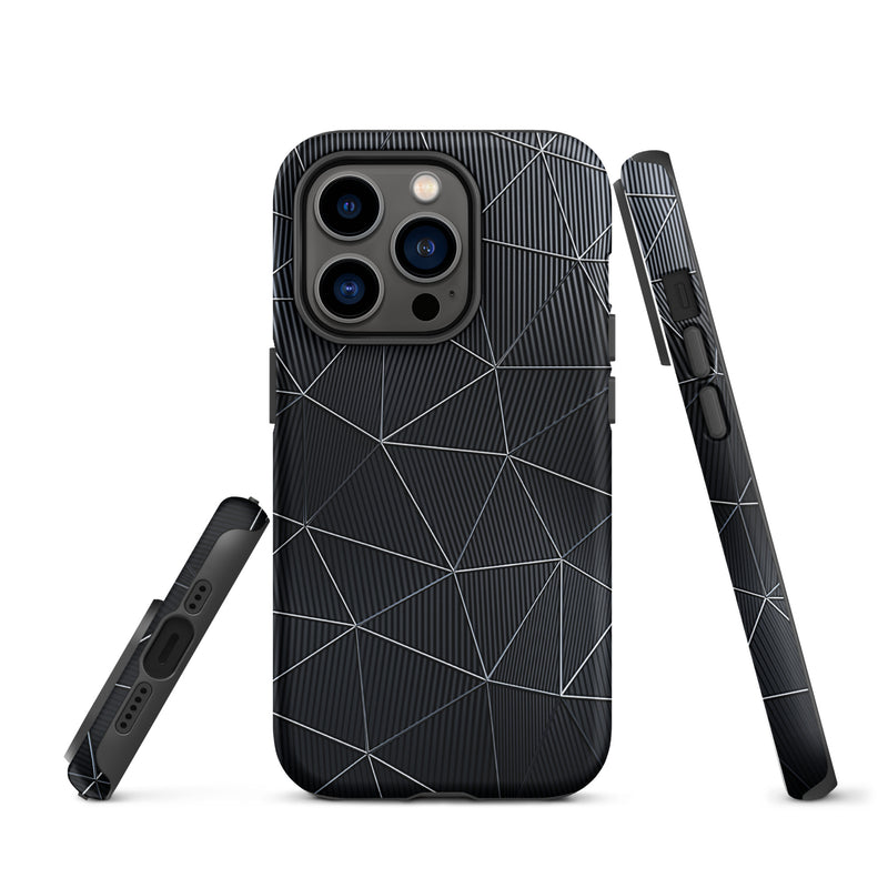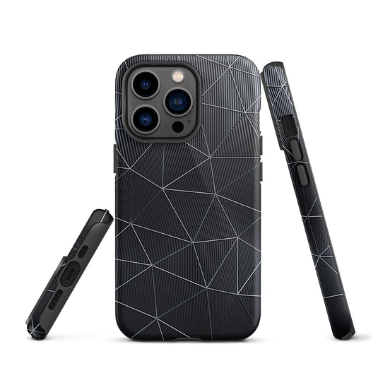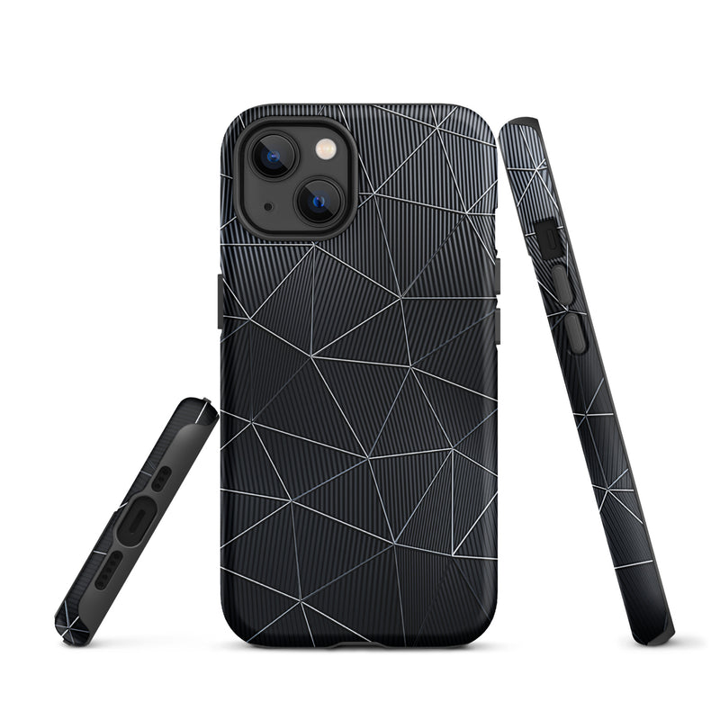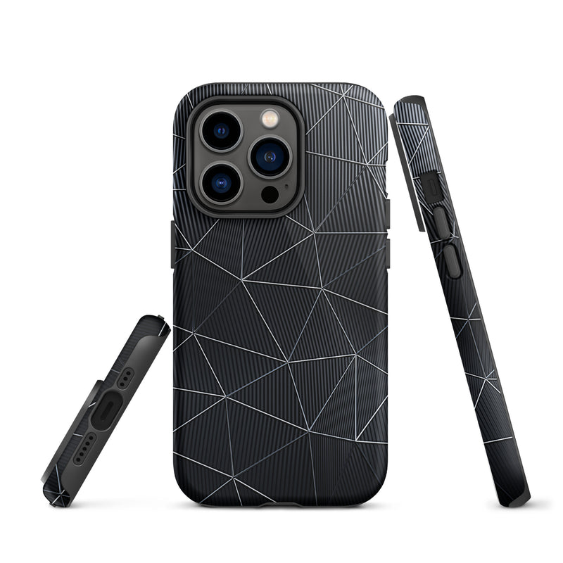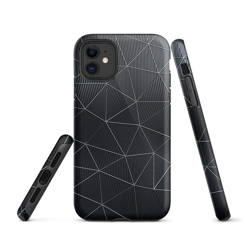Silver Polygon Black Fiber Striped iPhone Case Hardshell 3D Wrap Thermal Double Layer