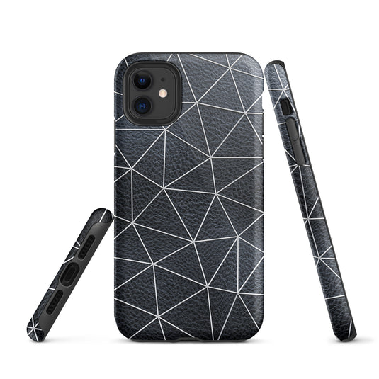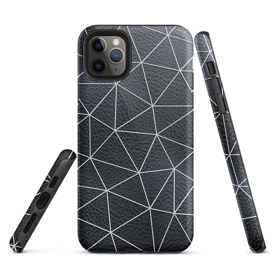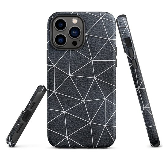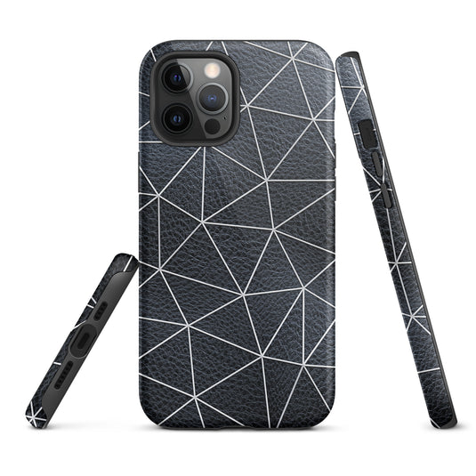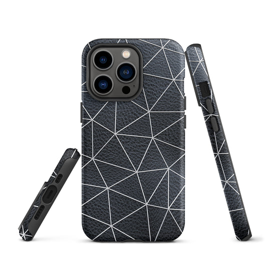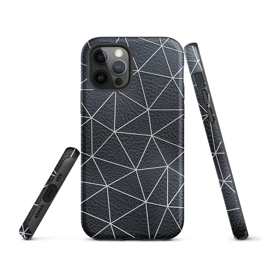 Polygon Black White Leather-Like iPhone Case Hardshell 3D Wrap Thermal Double Layer