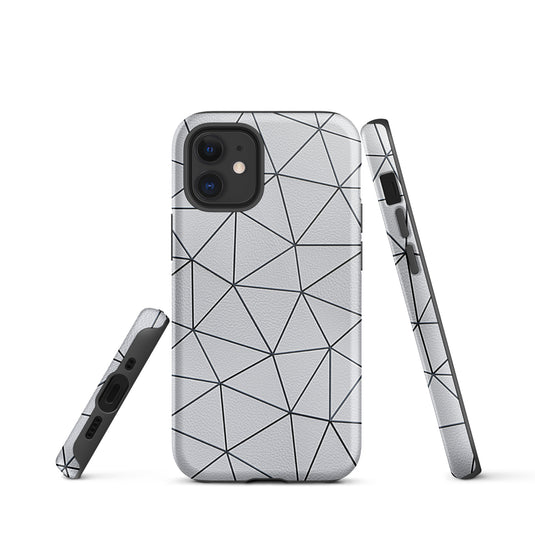 iPhone 12 mini Glossy Polygon White Black Leather-Like iPhone Case Hardshell 3D Wrap Thermal Double Layer