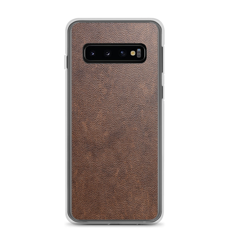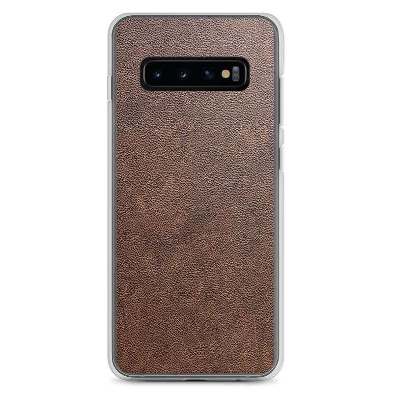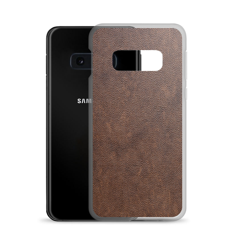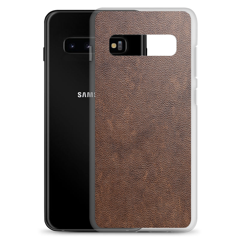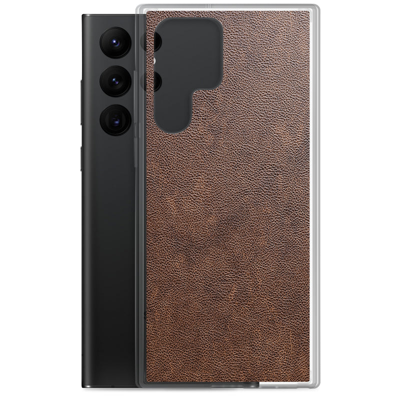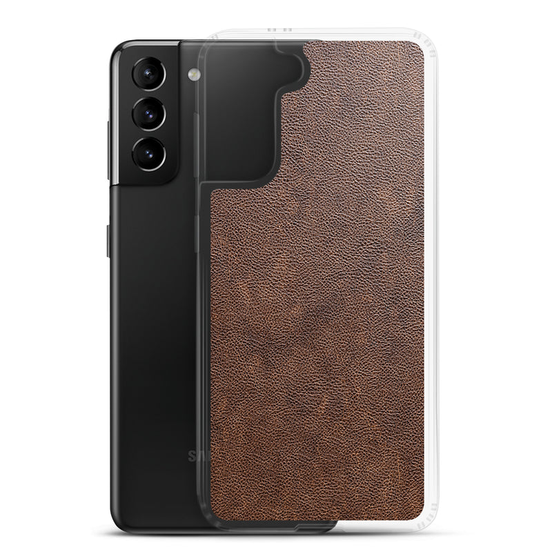 Light Brown Leather-Like Samsung Case Clear Thin