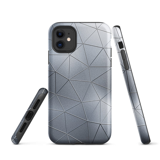Silver Polygon Metal-Like iPhone Case Hardshell 3D Wrap Thermal Double Layer