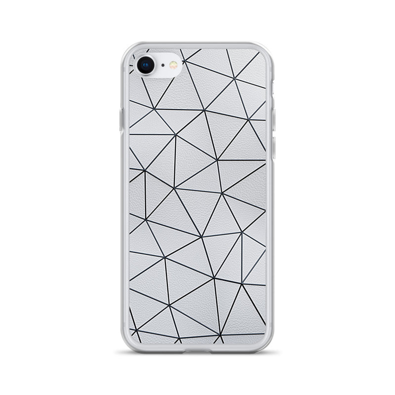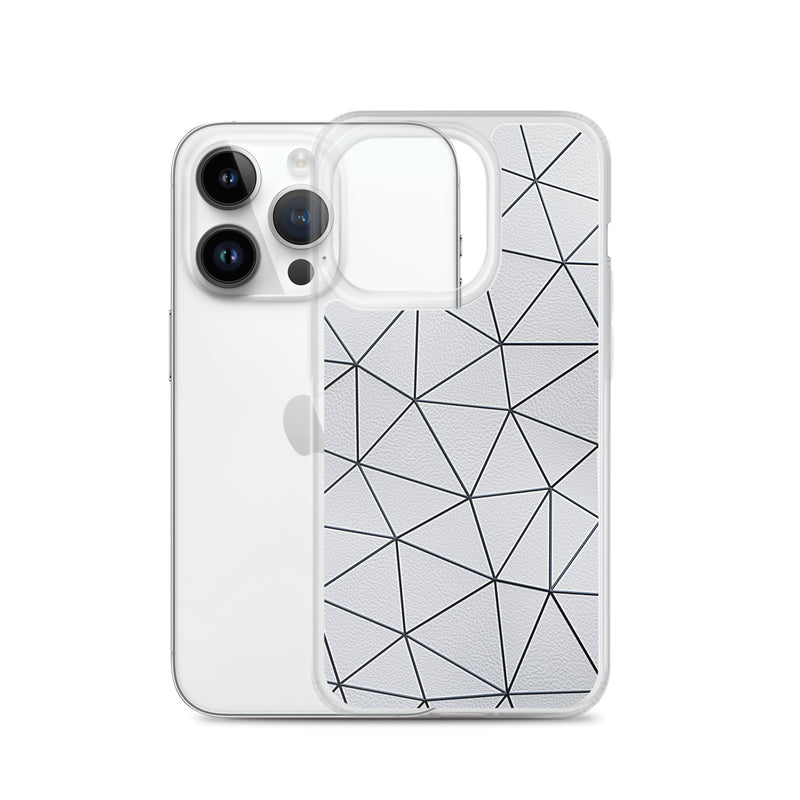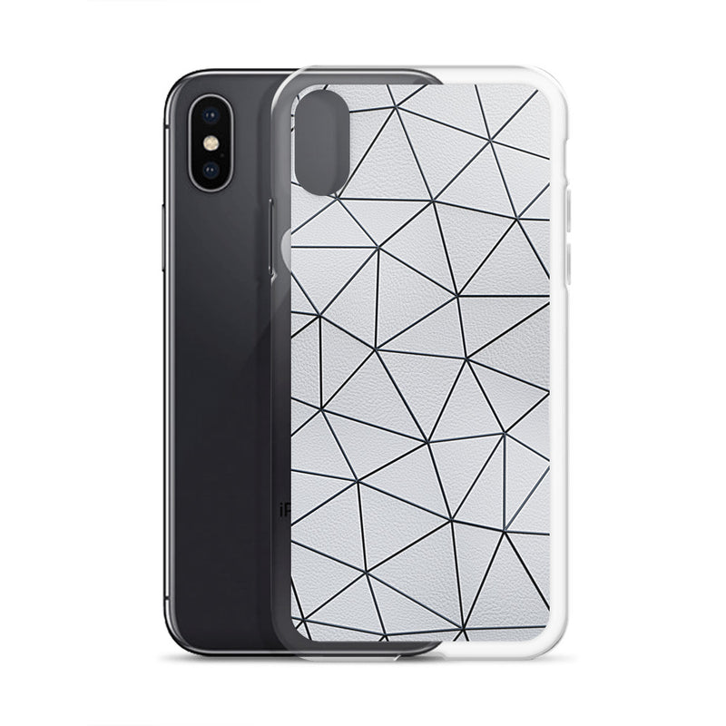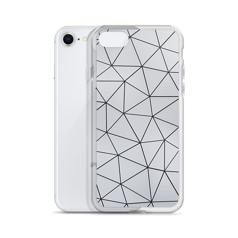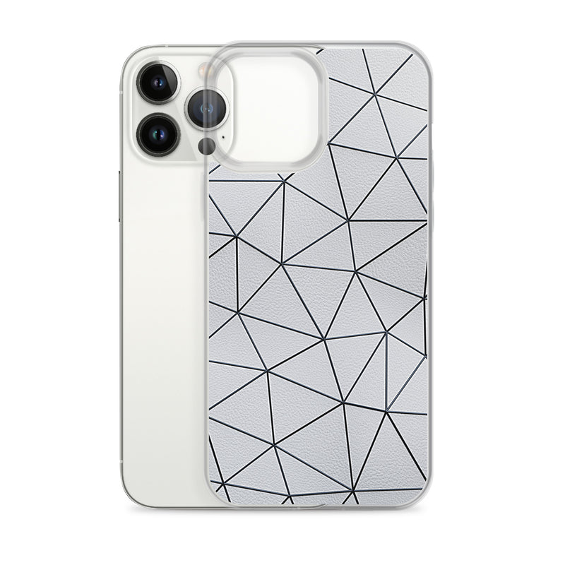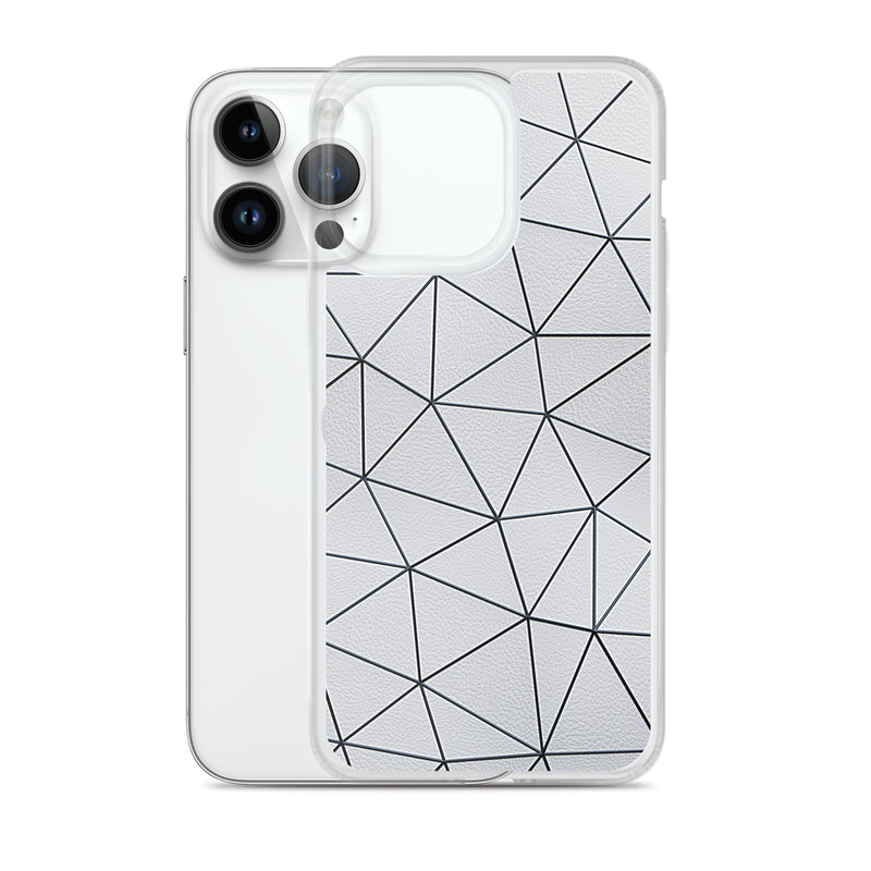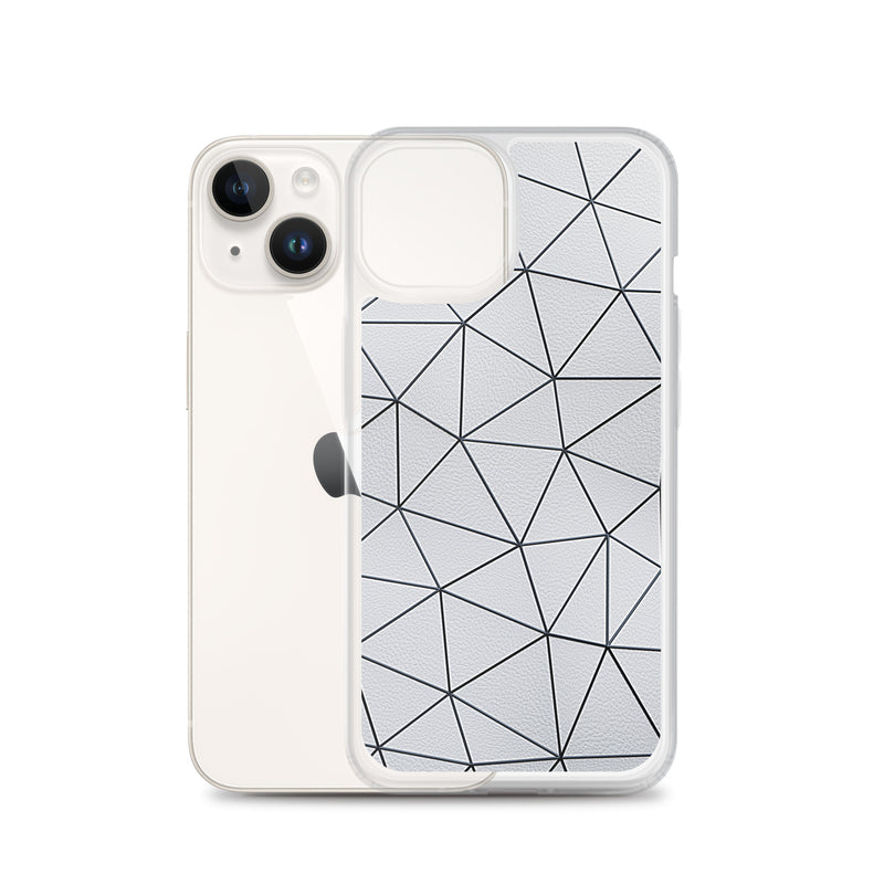 Black Polygon White Leather-Like iPhone Case Clear Thin