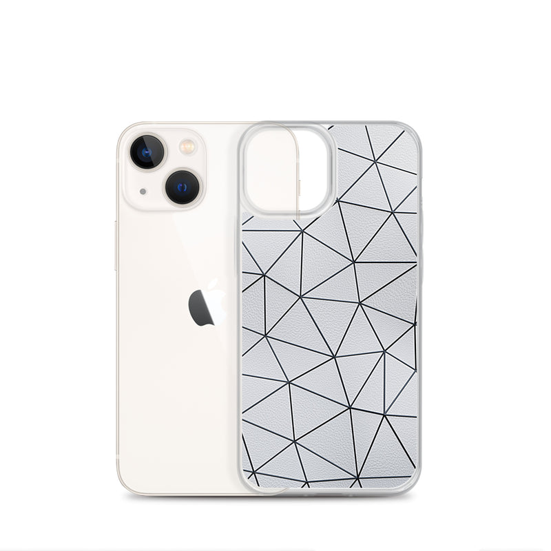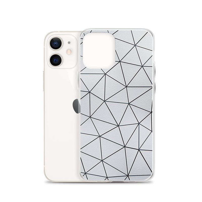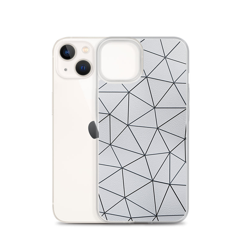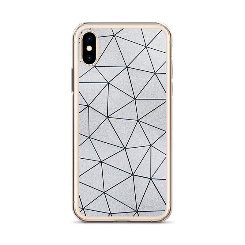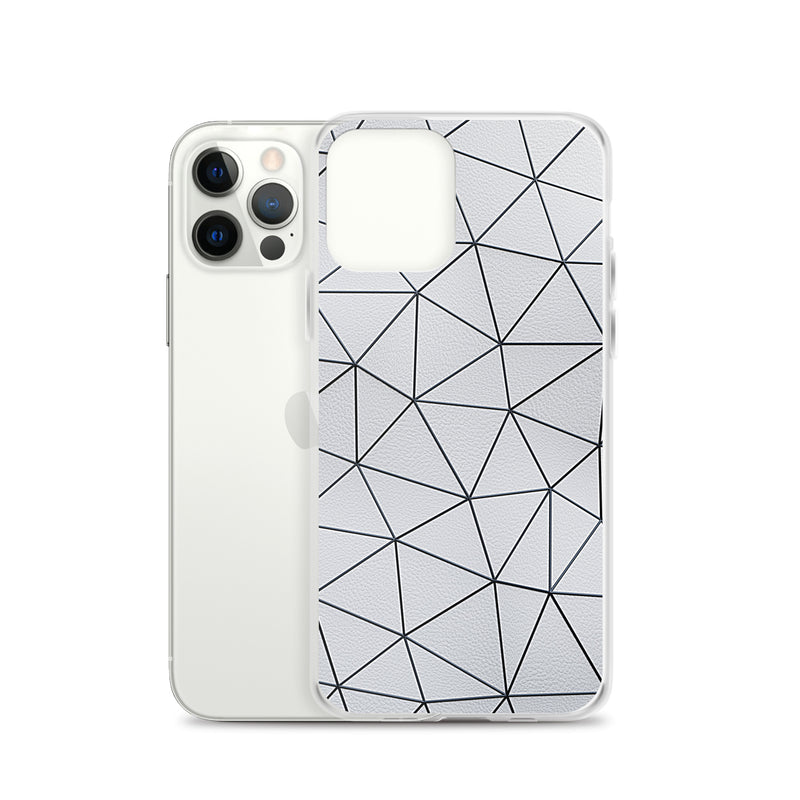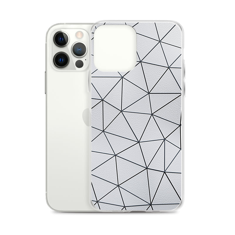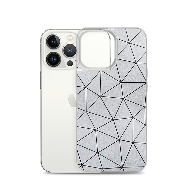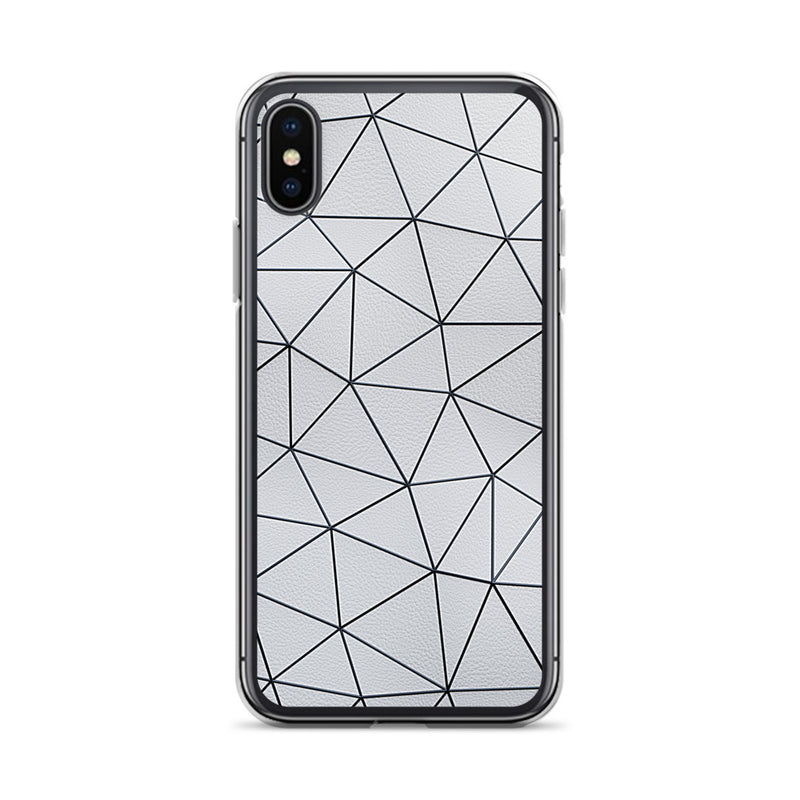 Black Polygon White Leather-Like iPhone Case Clear Thin