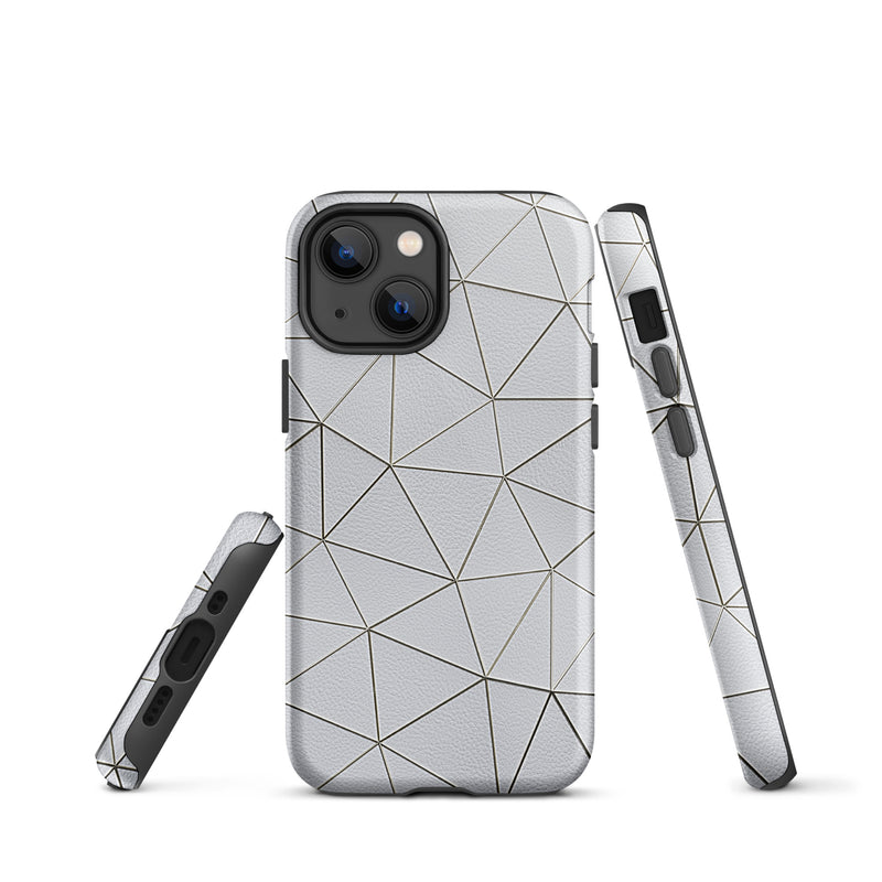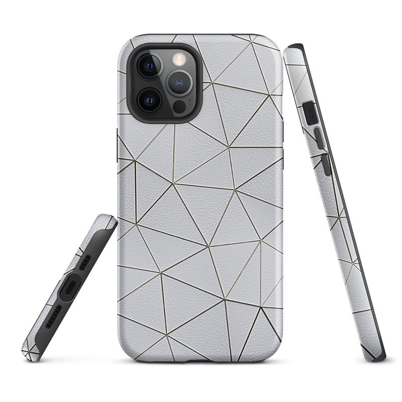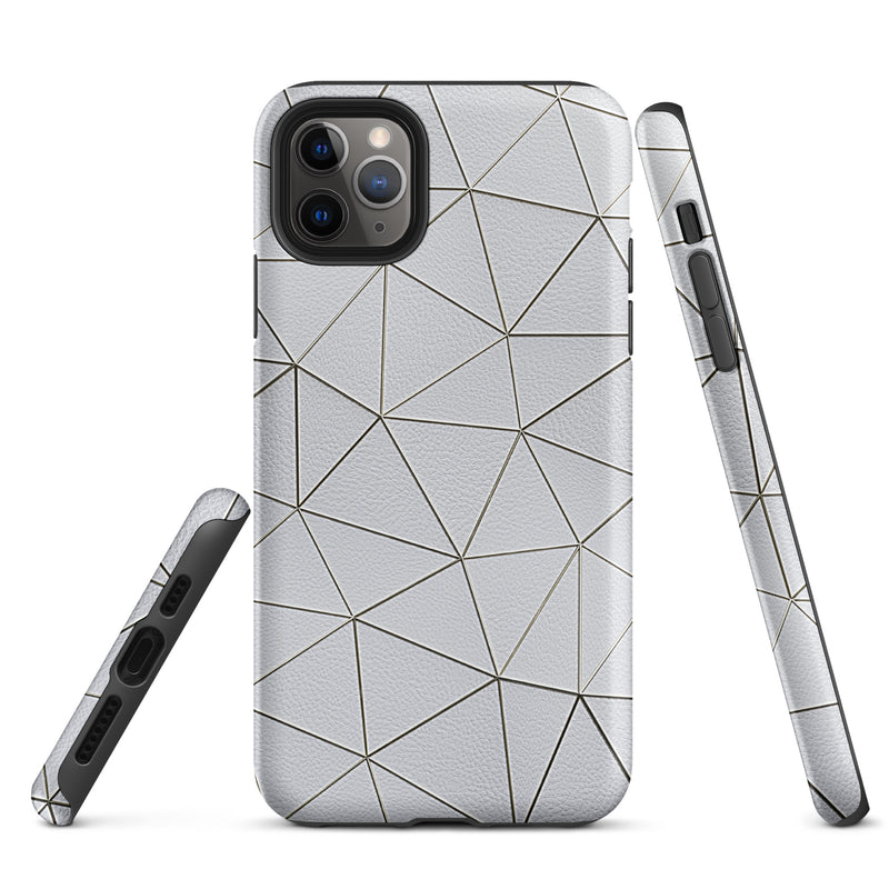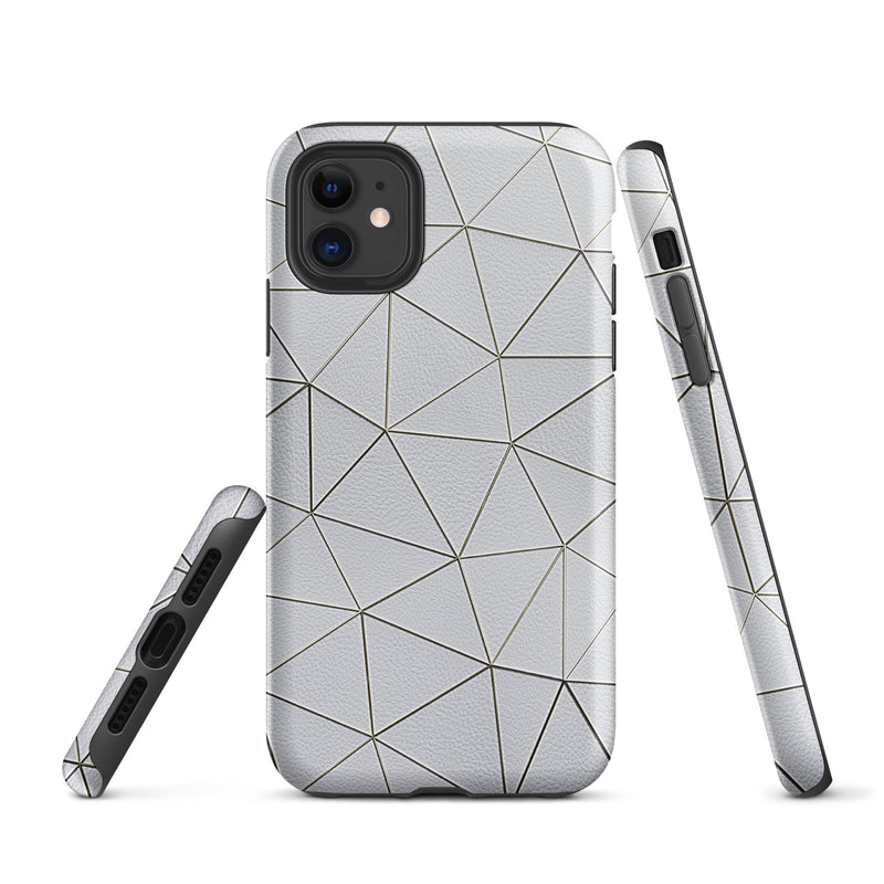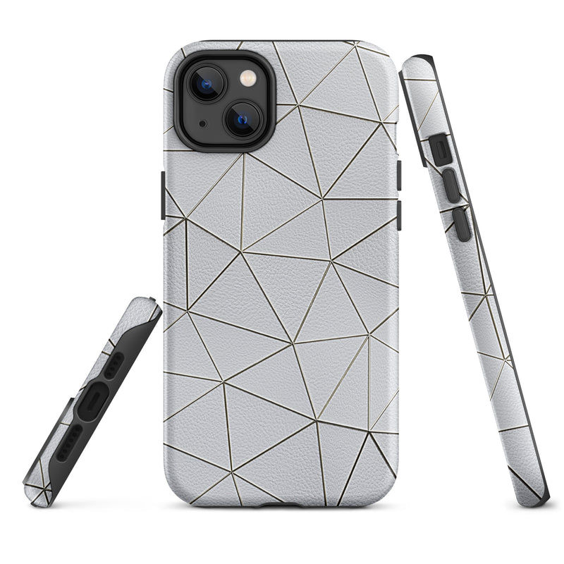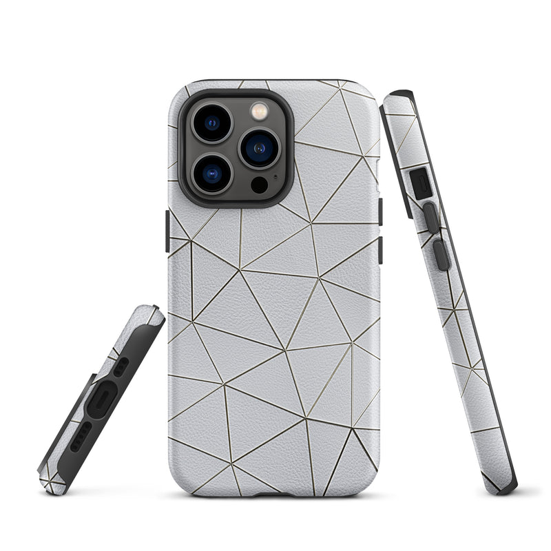 Golden Polygon White Leather-Like iPhone Case Hardshell 3D Wrap Thermal Double Layer