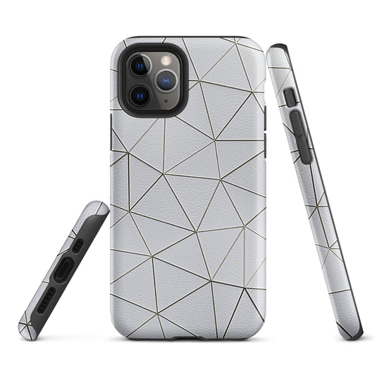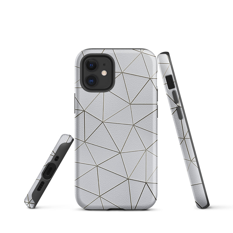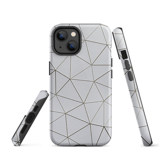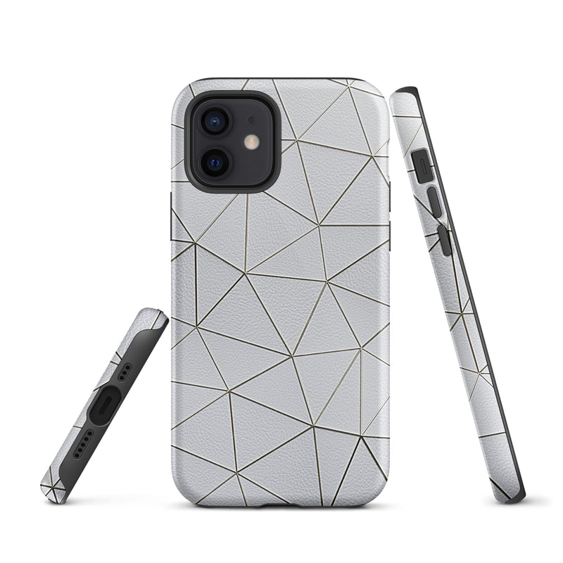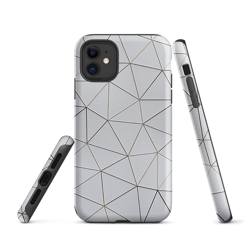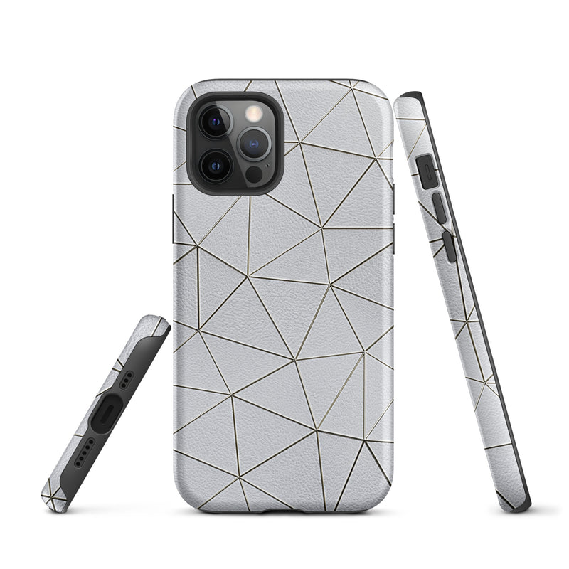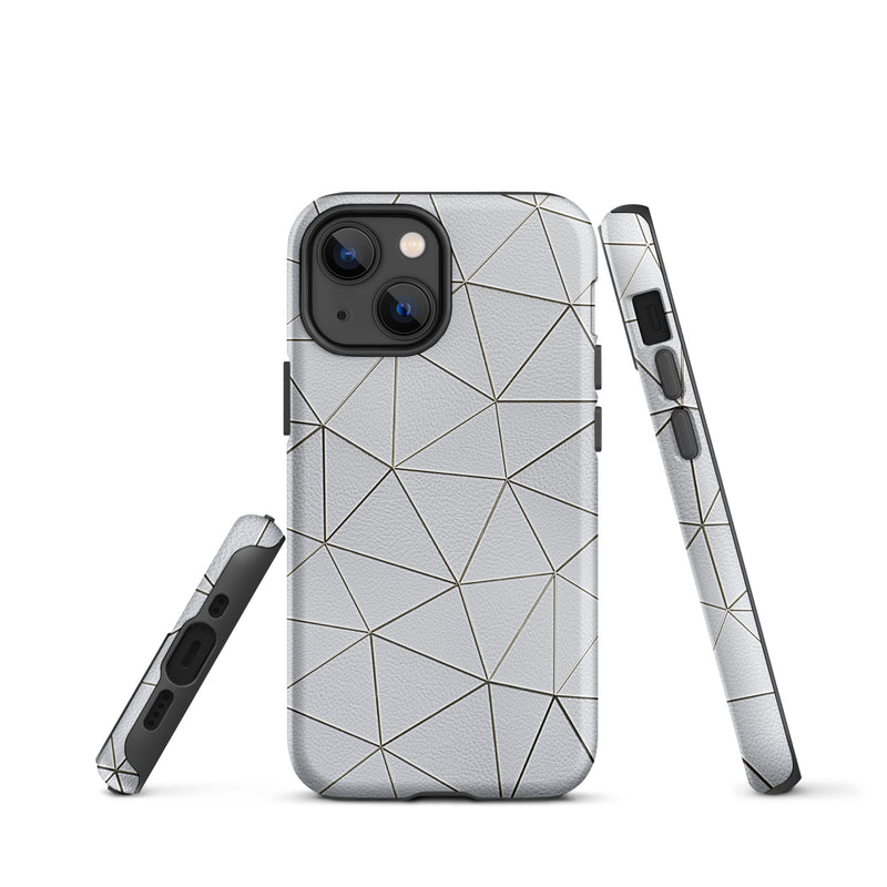 Golden Polygon White Leather-Like iPhone Case Hardshell 3D Wrap Thermal Double Layer