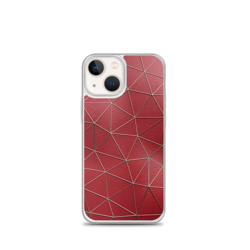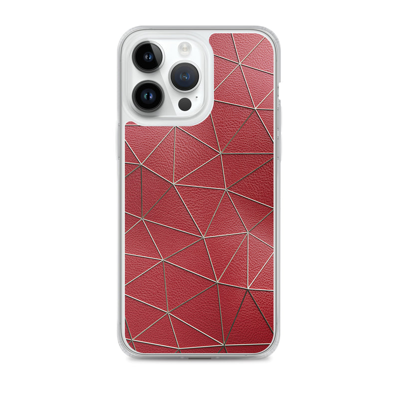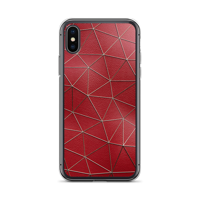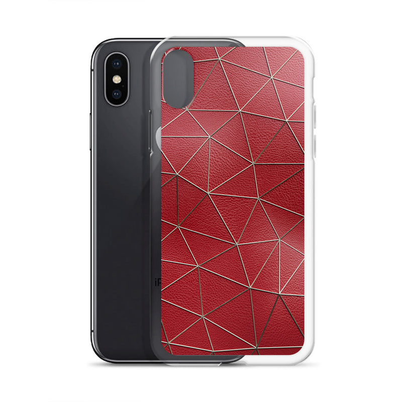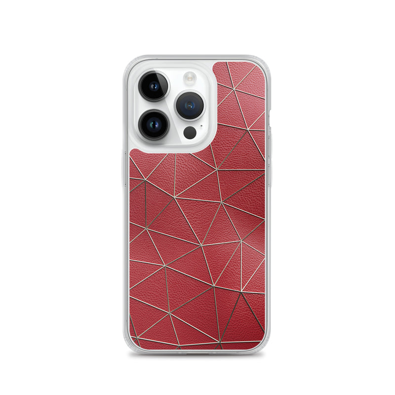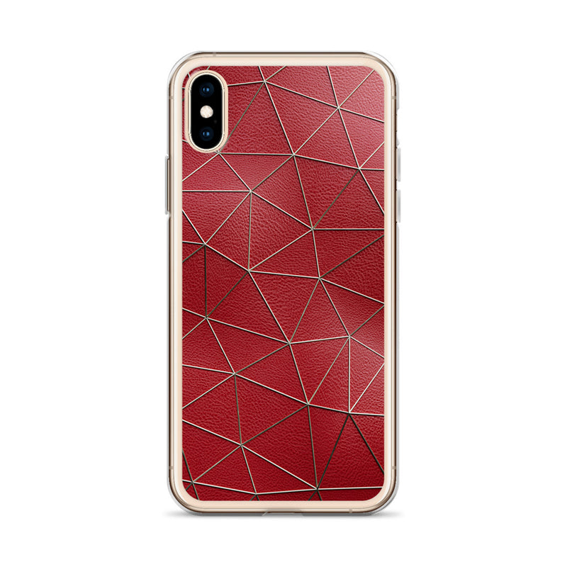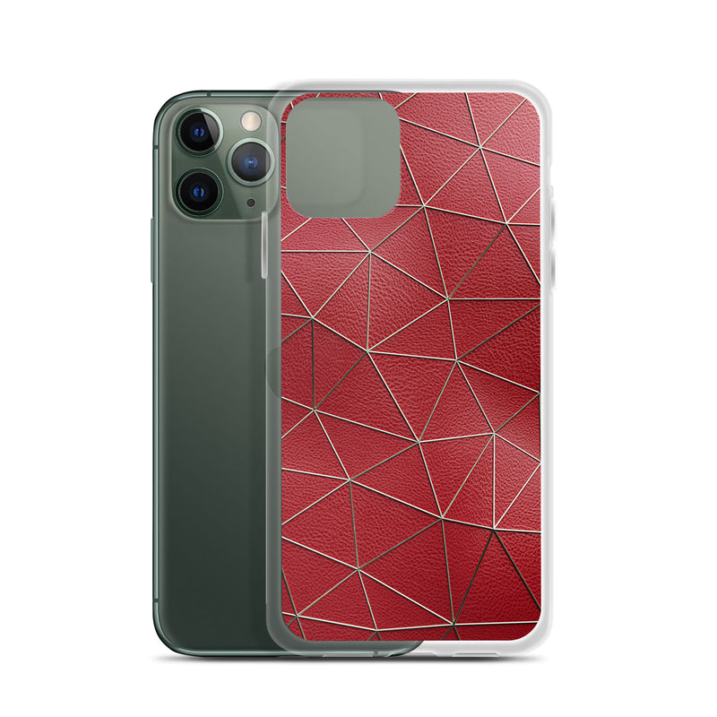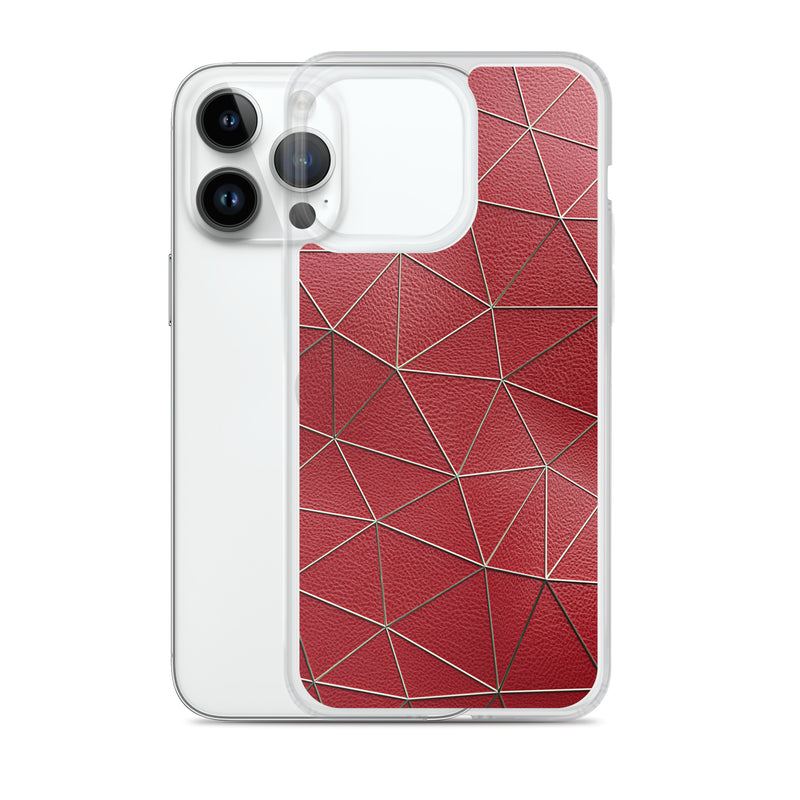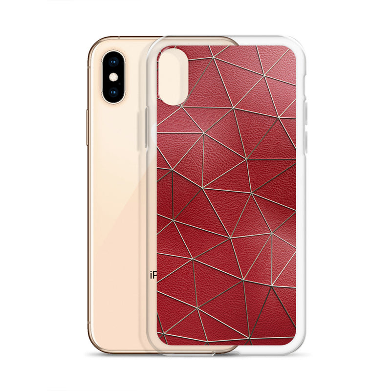 Golden Polygon Red Leather-Like iPhone Case Clear Thin