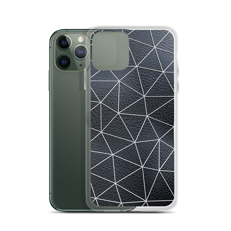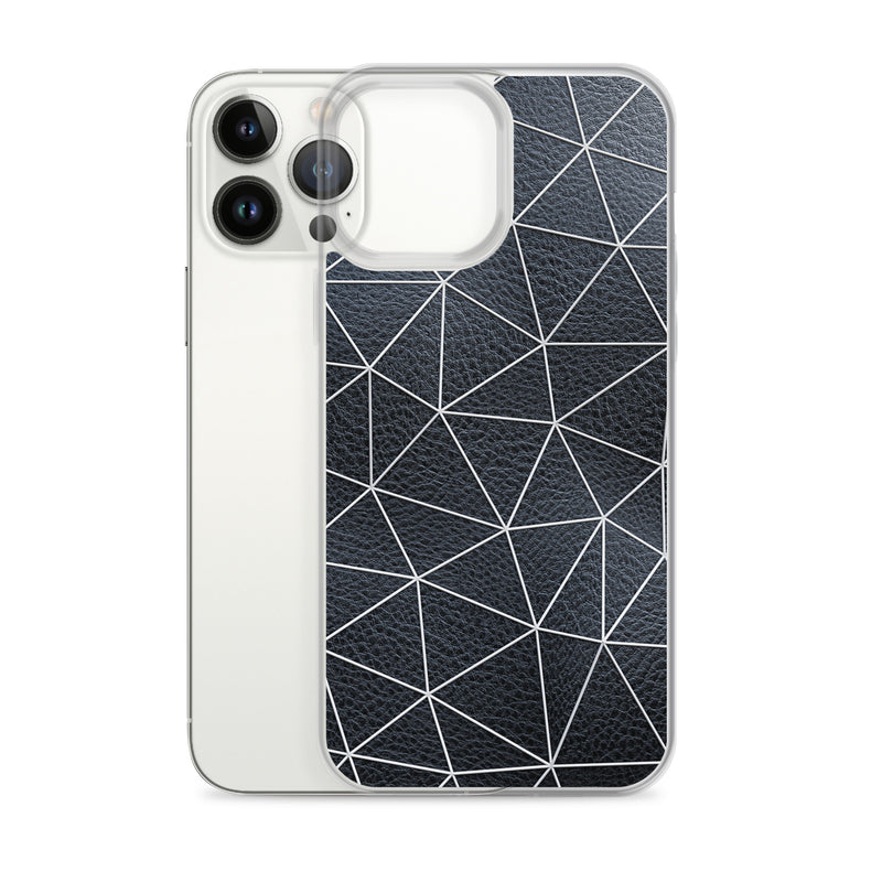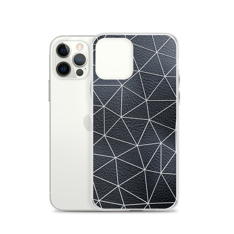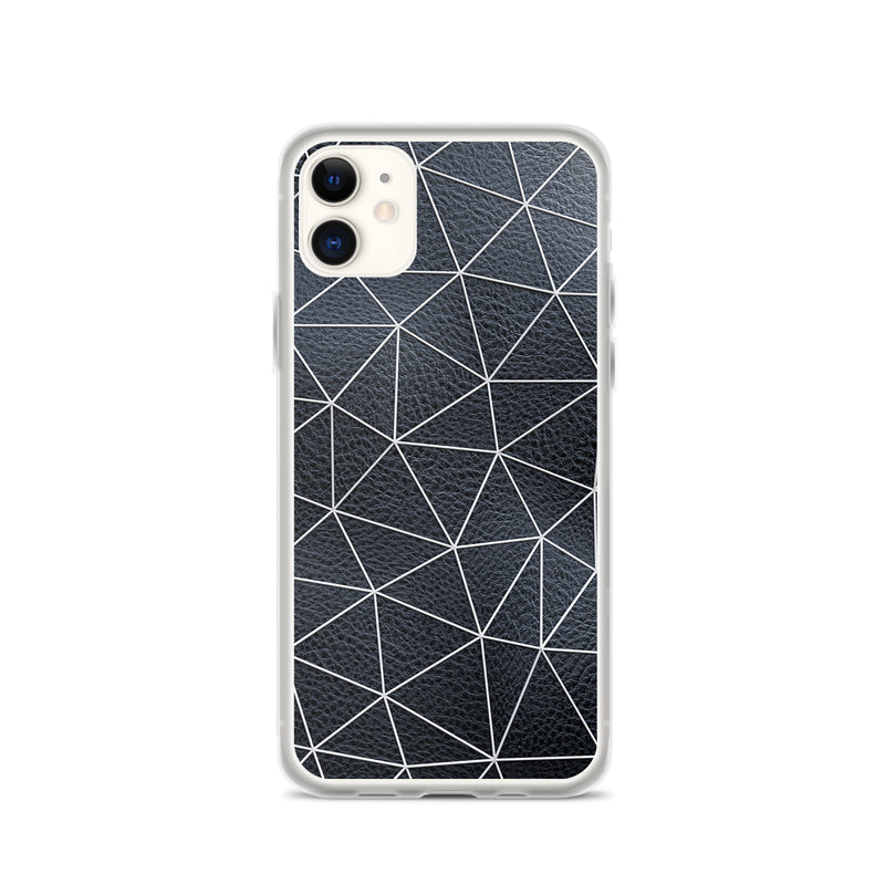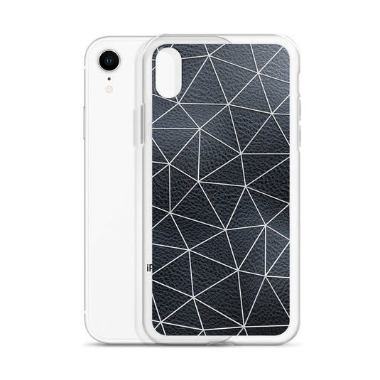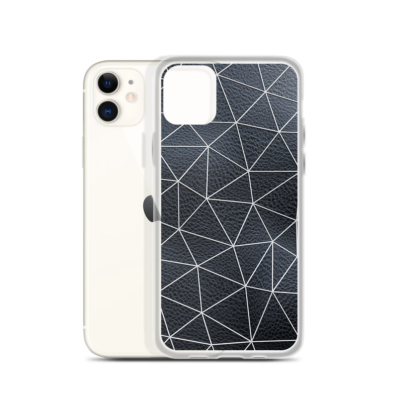 White Polygon Black Leather-Like iPhone Case Clear Thin
