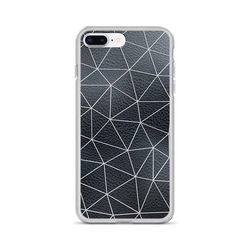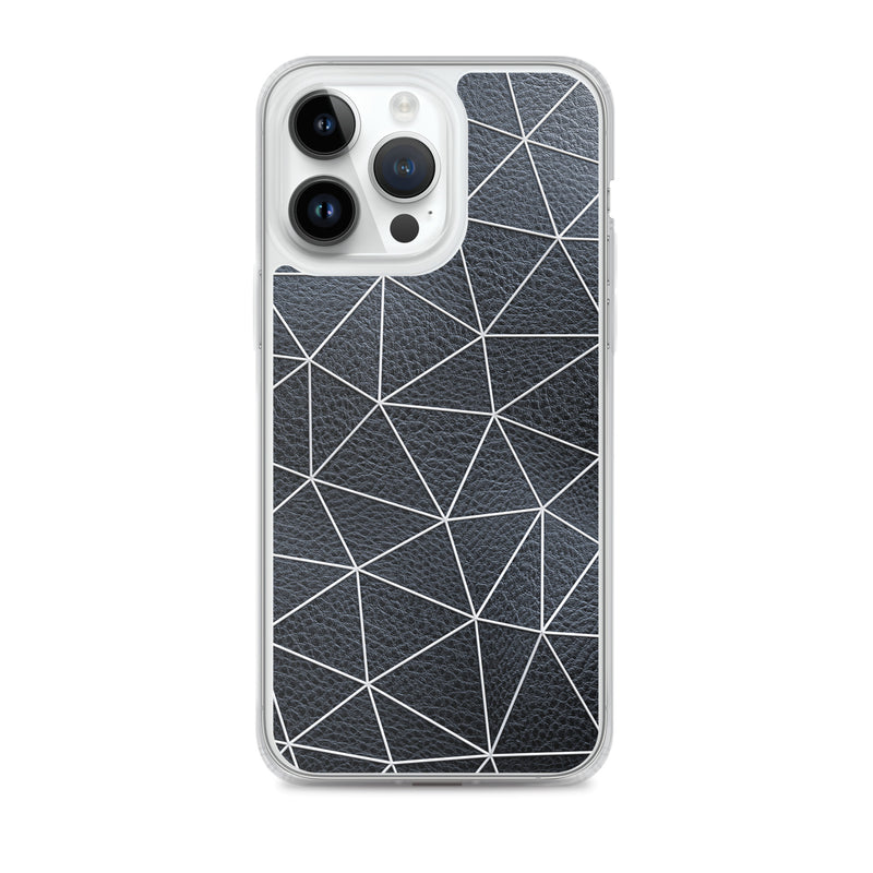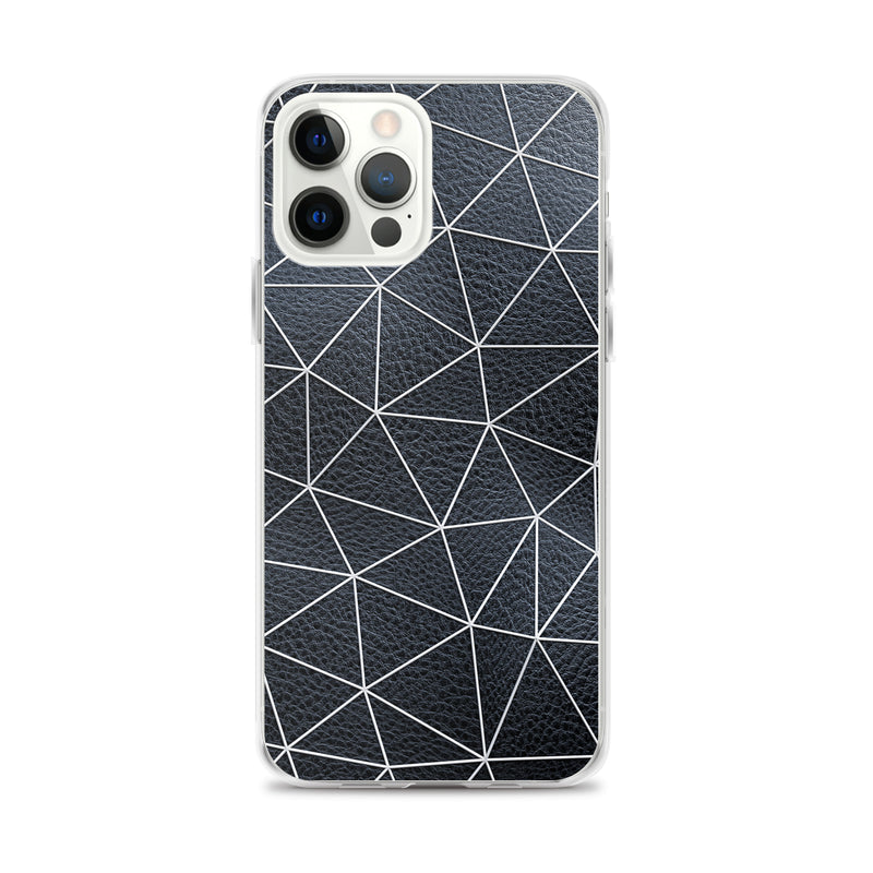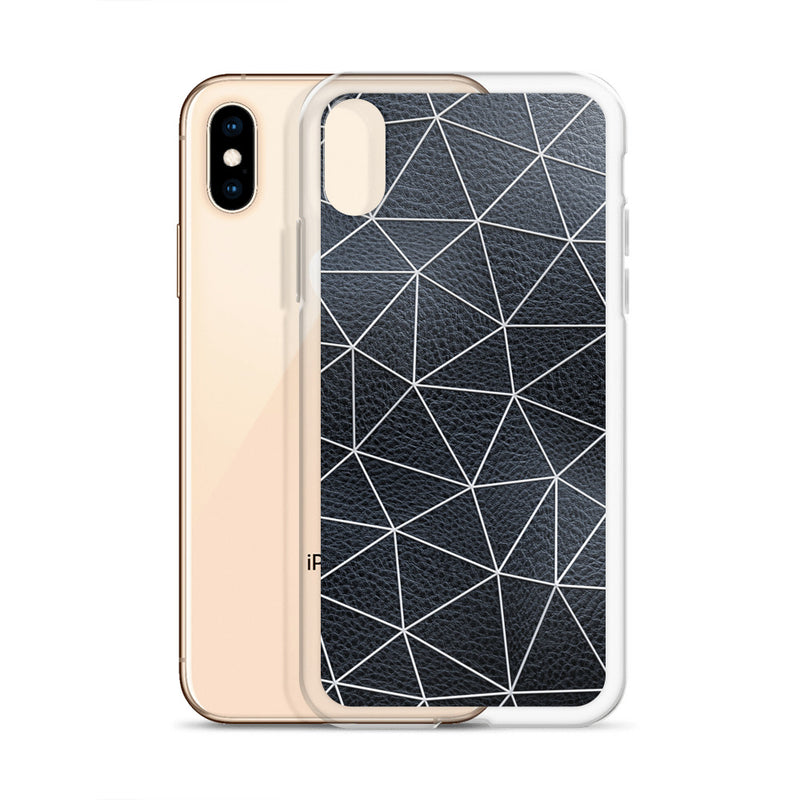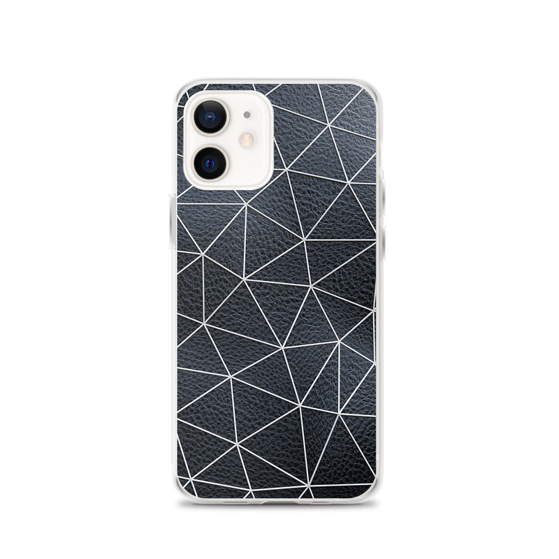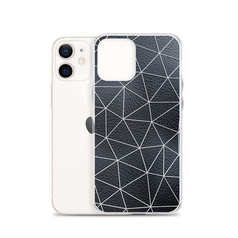 White Polygon Black Leather-Like iPhone Case Clear Thin