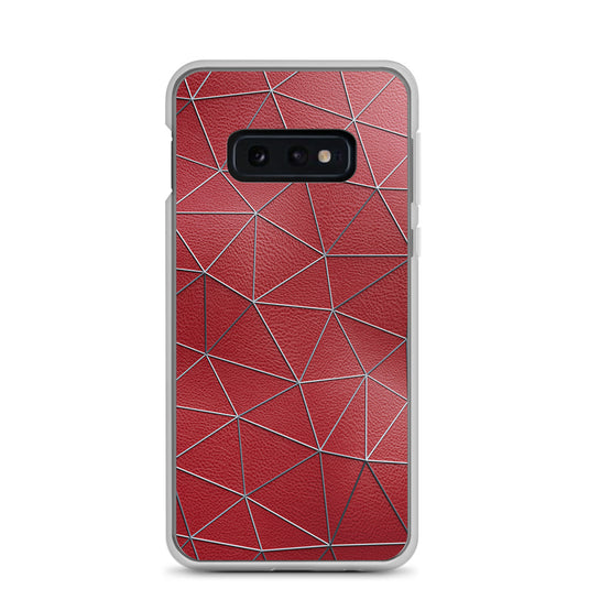 Samsung Galaxy S10e Silver Polygon Red Leather-Like Samsung Case Clear Thin