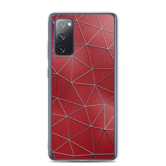 Samsung Galaxy S20 FE Silver Polygon Red Leather-Like Samsung Case Clear Thin
