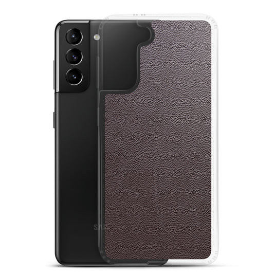Dark Brown Leather-Like Samsung Case Clear Thin