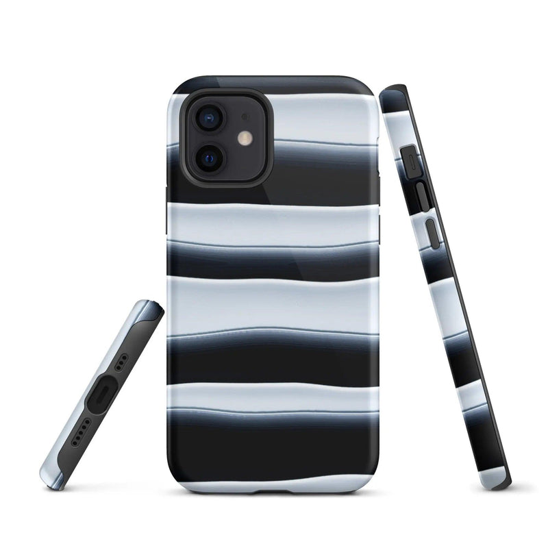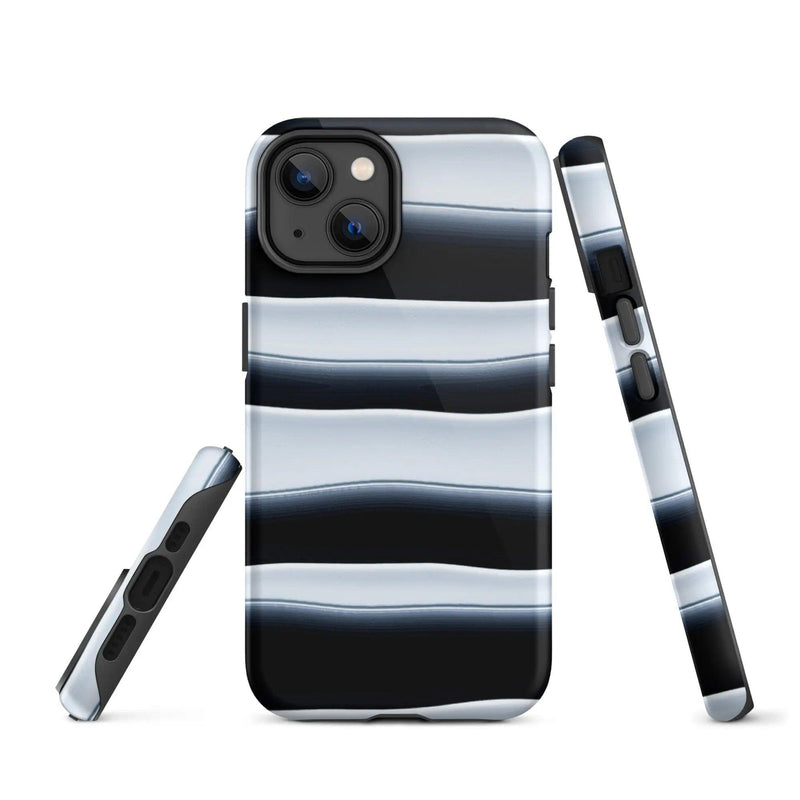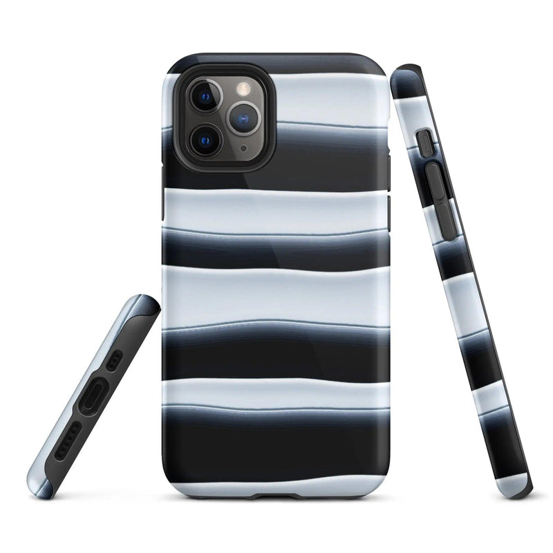 Load image into Gallery viewer, Black White Blob Stripes Double Layered Impact Resistant Tough iPhone Case 3D Wrap Matte or Glossy Finish CREATIVETECH